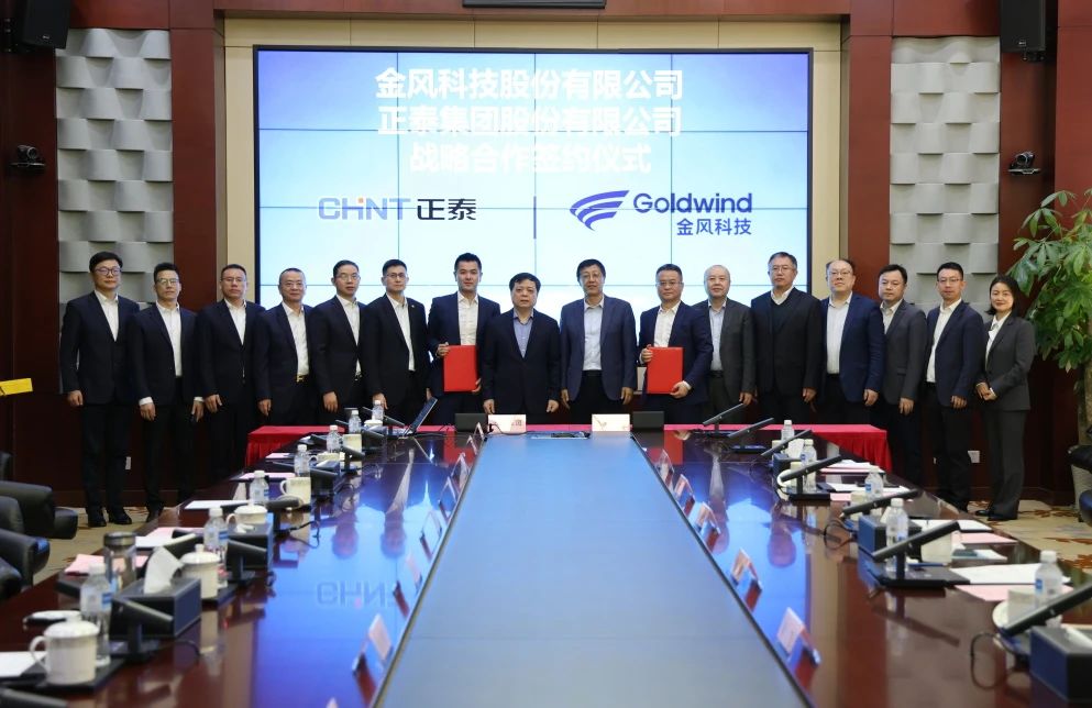 4月2日,正泰集团与金风科技在杭州举行战略合作签约仪式。金风科技董事长武钢、正泰集团董事长南存辉见证签约,金风科技副总裁兼天润新能董事长李飞与正泰集团董事、正泰新能源董事长陆川代表双方签订协议。