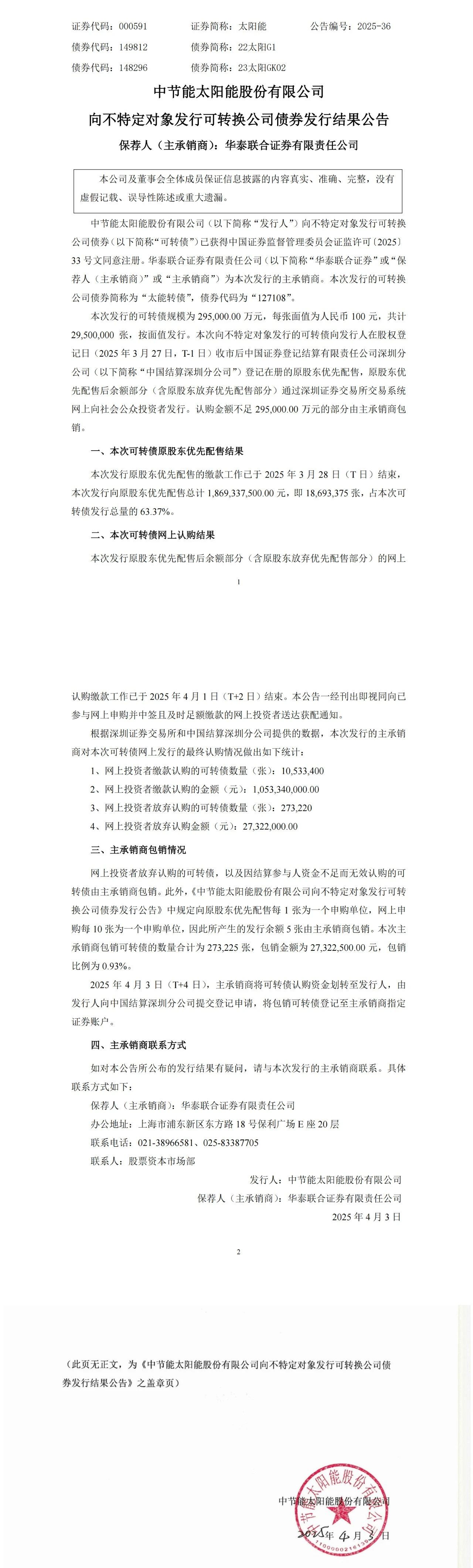 4月3日,中节能太阳能成功完成29.5亿元可转债募集。