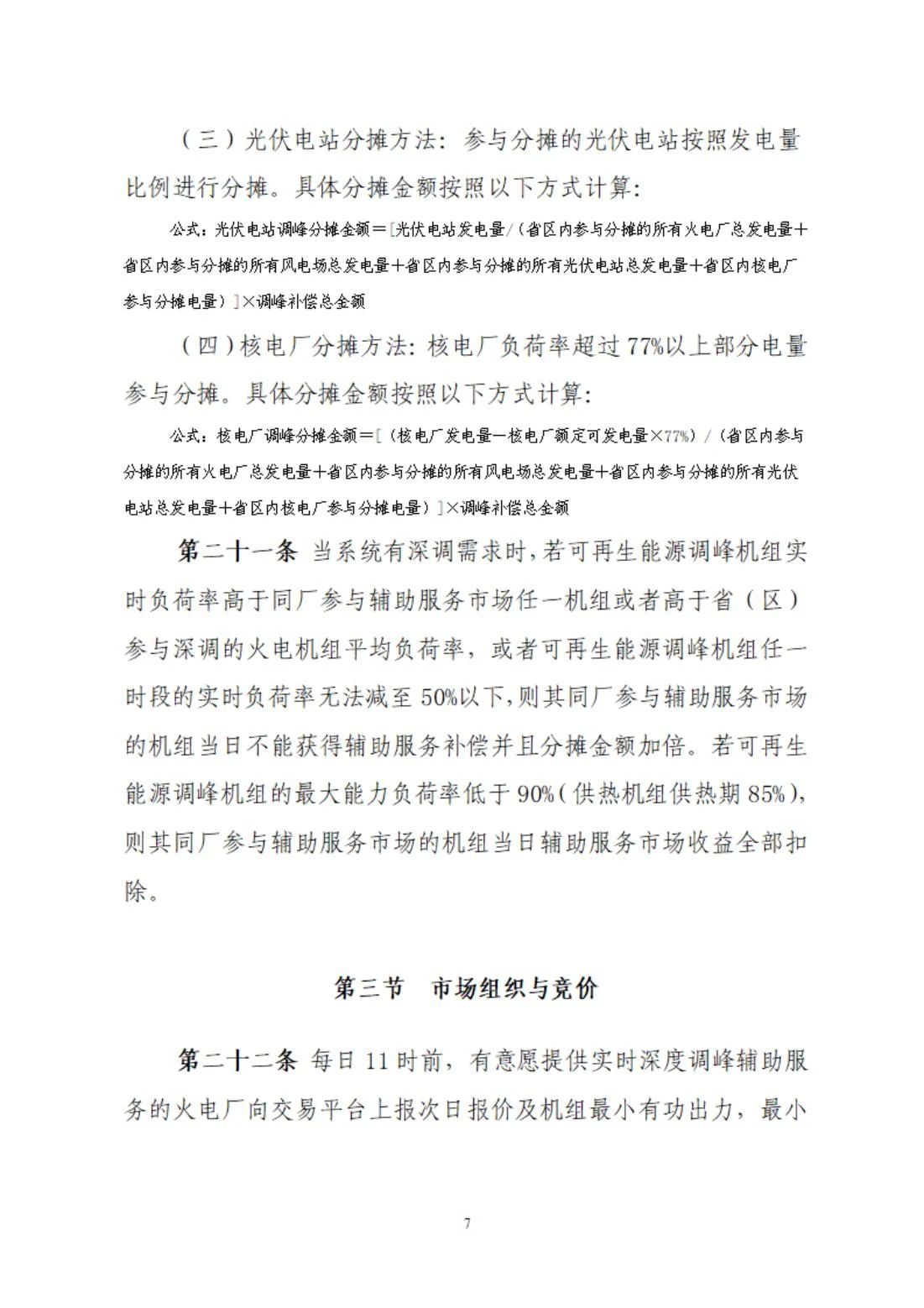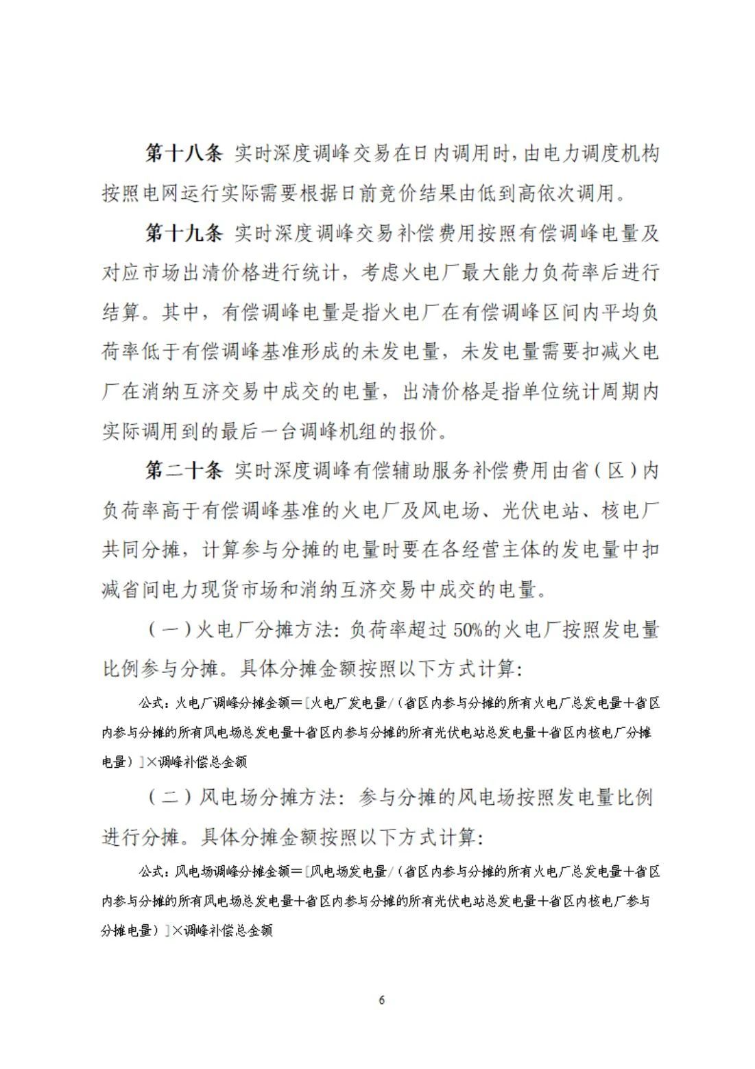 实时深度调峰有偿辅助服务补偿费用由省(区)内负荷率高于有偿调峰基准的火电厂及风电场、光伏电站、核电厂共同分摊,计算参与分摊的电量时要在各经营主体的发电量中扣减省间电力现货市场和消纳互济交易中成交的电量。