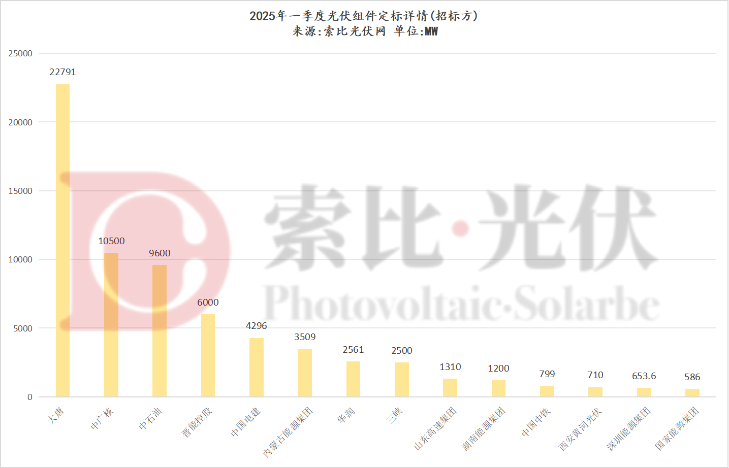 此外,晋能控股、中国电建、内蒙古能源集团、华润、三峡、山东高速集团、湖南能源集团一季度组件定标也超吉瓦。