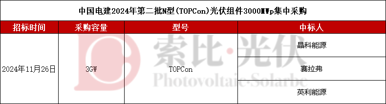 明确为TOPCon组件招标的包括中石油9.4GW、中国电建3GW、大唐19.5GW、晋能控股6GW、三峡2.5GW、深圳能源集团654MW等;明确为HJT组件招标的有大唐2GW、中石油100MW;明确为BC组件招标的有大唐1GW、中石油100MW。