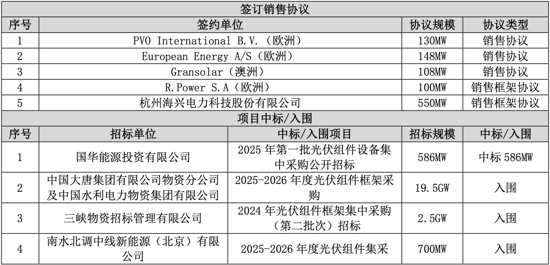 4月8日,通威股份(SH:600438)发布近期公司组件业务大型销售协议签署及主要项目中标、入围情况,其中签订销售协议合计1036MW,项目中标/入围合计23.286GW,以上共计24.322GW。具体如下: