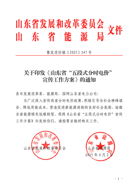 近日,山东省发展和改革委员会、山东省能源局发布关于印发《山东省“五段式分时电价”宣传工作方案》的通知(鲁发改价格〔2025)247号),积极引导全社会移峰填谷、降低用电成本。以“用电分时段,生活更低碳”为主题,组织开展系列宣传活动。