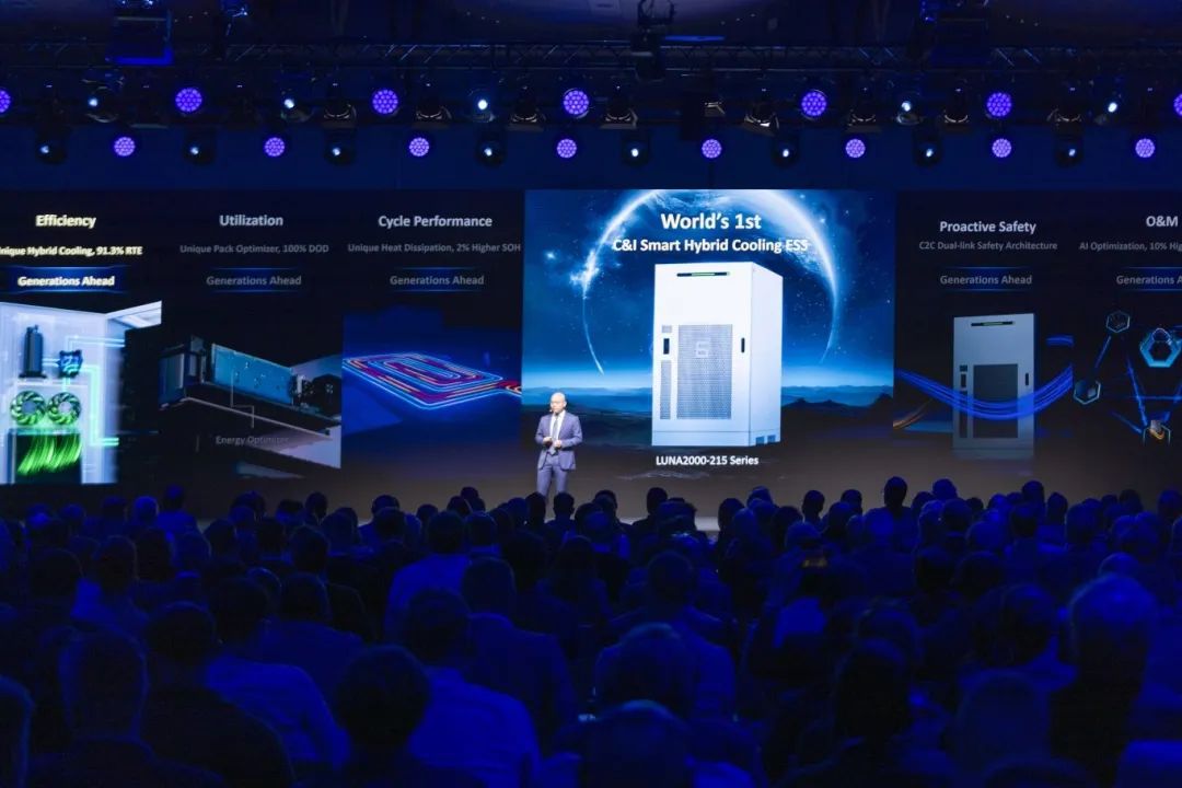 华为数字能源全球工商业销售与服务总裁童金禄发布了行业首款工商业智能风液储能系统——LUNA2000 - 215系列!