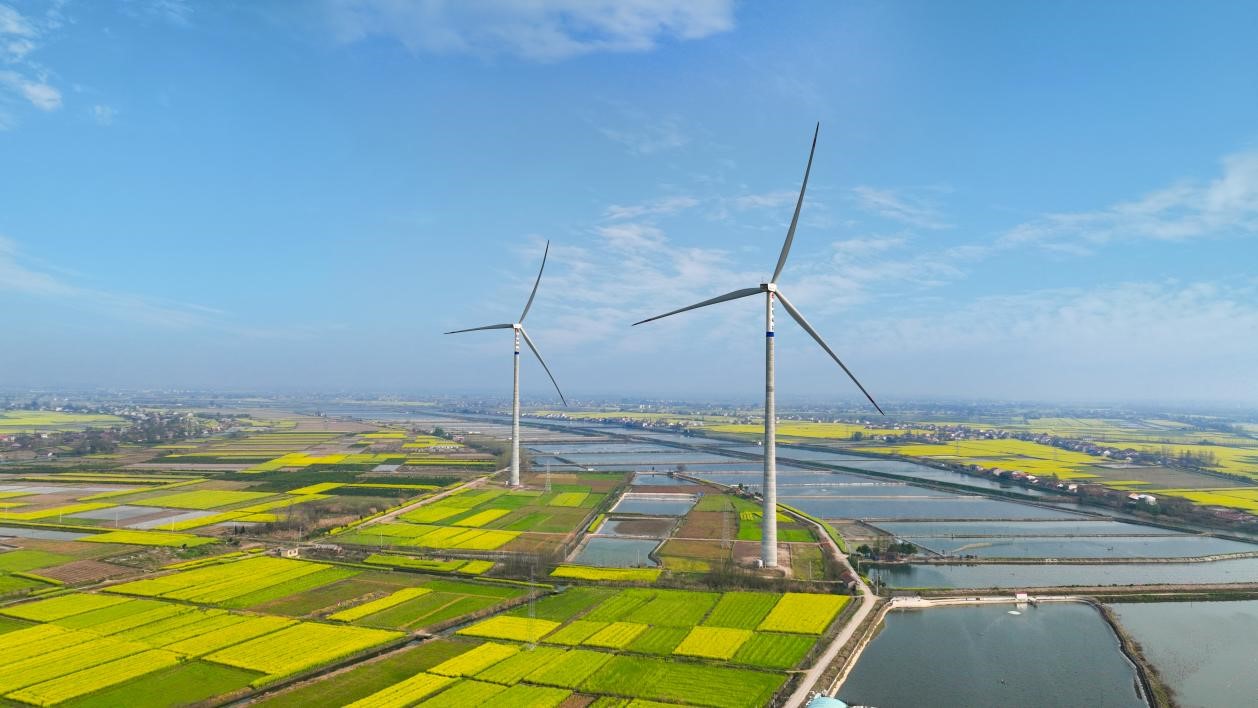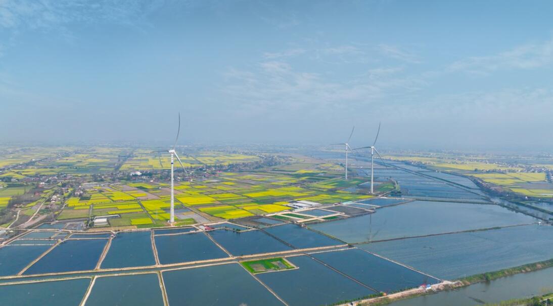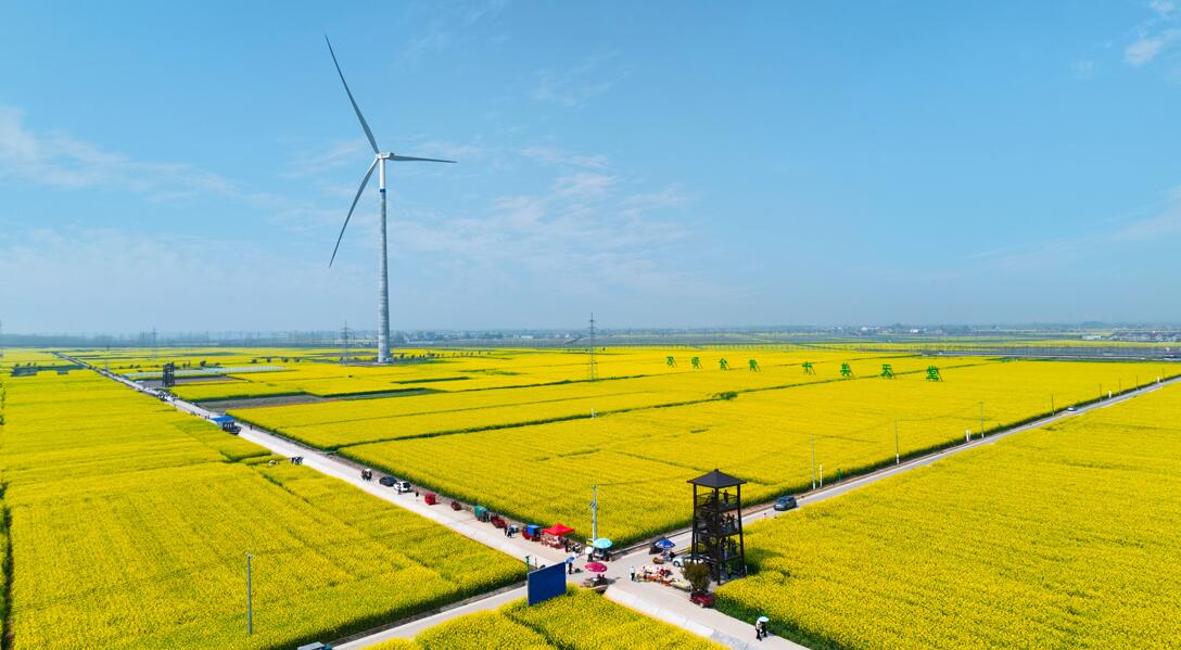 最美四月天,湖南鼎城十美堂镇的万亩油菜花田迎来盛放季。金灿灿的花田中,白色风车随风旋转。这里是鼎城200MW风电场,由国家电投五凌电力、阳光新能源联合投资建成,系湖南首个大型平原混塔风电场。