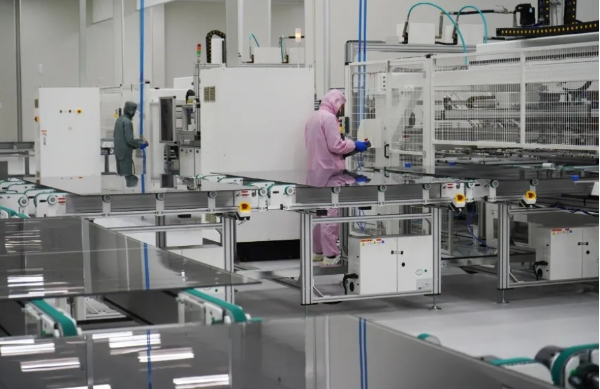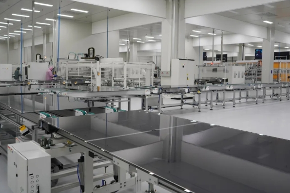 近期,极电光能GW级大尺寸钙钛矿光伏组件生产线于此落成,是全球第一条面向大尺寸批量化生产的钙钛矿组件生产线。产线长达300多米,前后道十几个工序。
