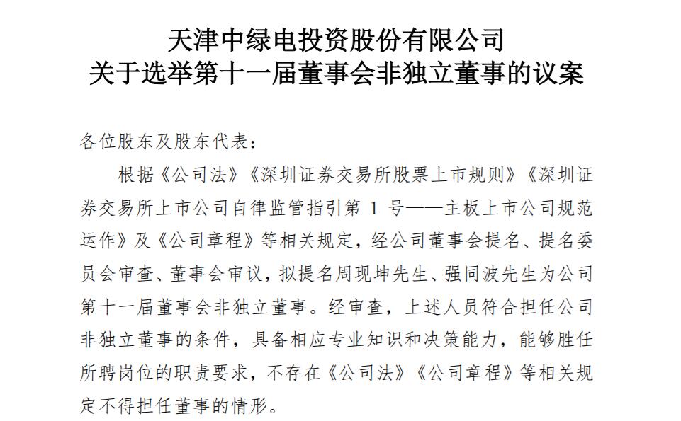 与此同时,中绿电董事会经董事长提名并经提名委员会审查通过,决定聘任强同波先生为公司新任总经理,任期与第十一届董事会任期保持一致。