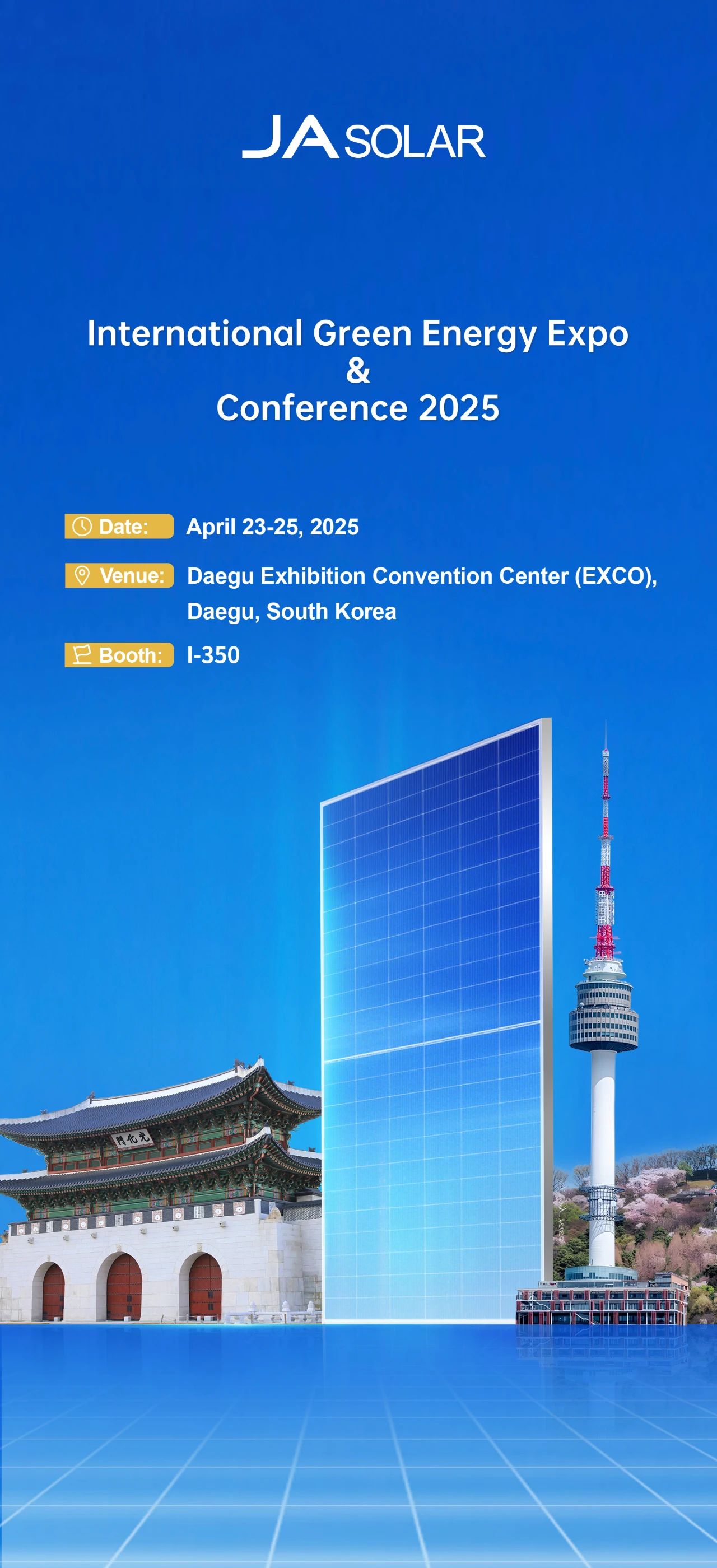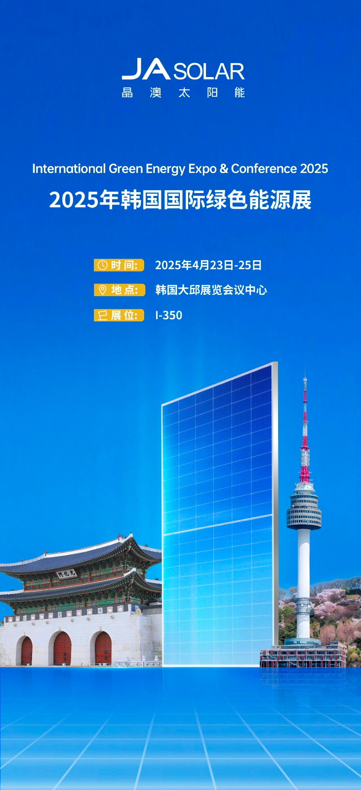 4月23日至25日,2025年韩国国际绿色能源展将于韩国大邱展览会议中心隆重举办。届时,晶澳科技将携高效组件产品闪耀亮相I-350展位。