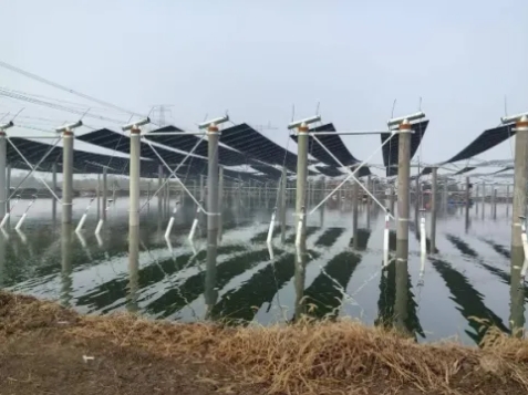 华润宜兴杨巷130MW项目通过柔性支架实现光伏阵列与养殖水域的共存,中标价达5245万元。