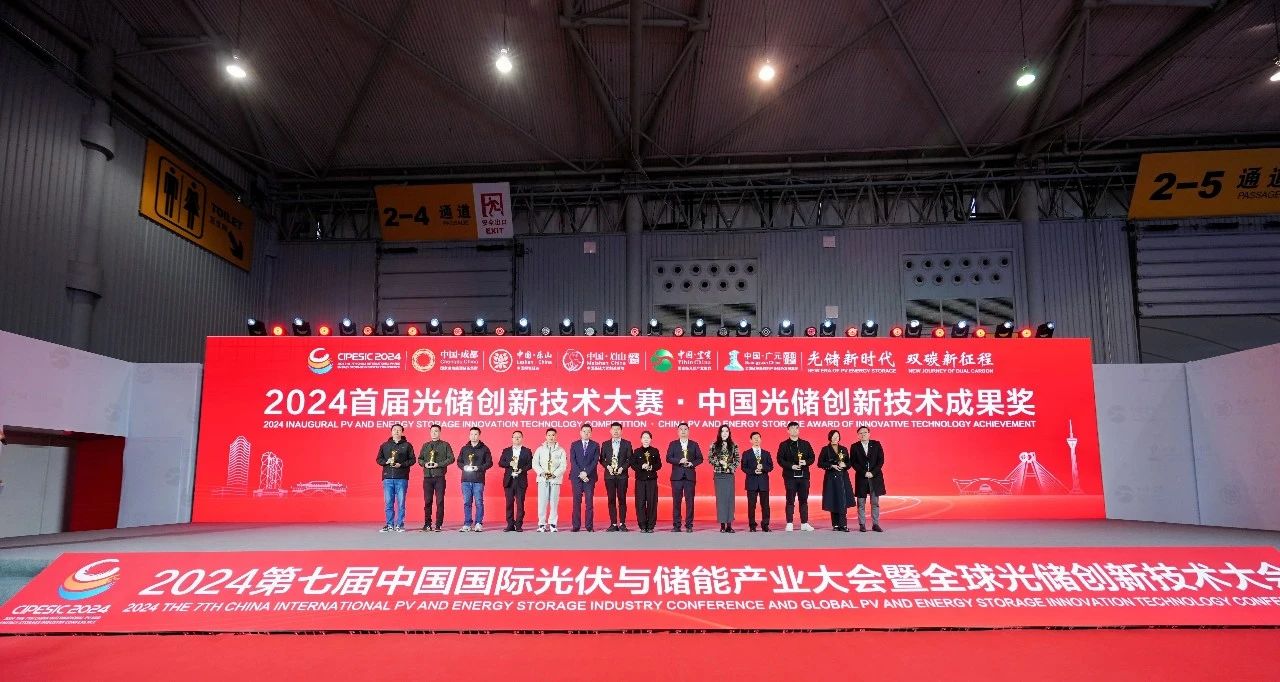 2024第七届中国国际光伏与储能产业大会期间,首届光储创新技术大赛颁奖仪式隆重举行。通威太阳能(成都)有限公司,江苏微导纳米科技股份有限公司,江苏协鑫硅材料科技发展有限公司,无锡先导智能装备股份有限公司,无锡奥特维科技股份有限公司,苏州迈为科技股份有限公司,湖南红太阳光电科技有限公司,成都硅宝科技股份有限公司,四川福碳新材料科技有限公司,乐山西部硅材料光伏新能源产业技术研究院、乐山师范学院等机构申报的技术创新项目,分别荣获2024首届光储创新技术大赛“中国光储创新技术成果奖”“中国光储前沿技术贡献奖”,进一步激发了获奖者的持续创新热情,更为整个光储行业树立了技术创新的标杆,为推动构建更加绿色、可持续的能源未来贡献了重要力量。