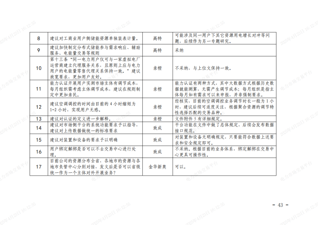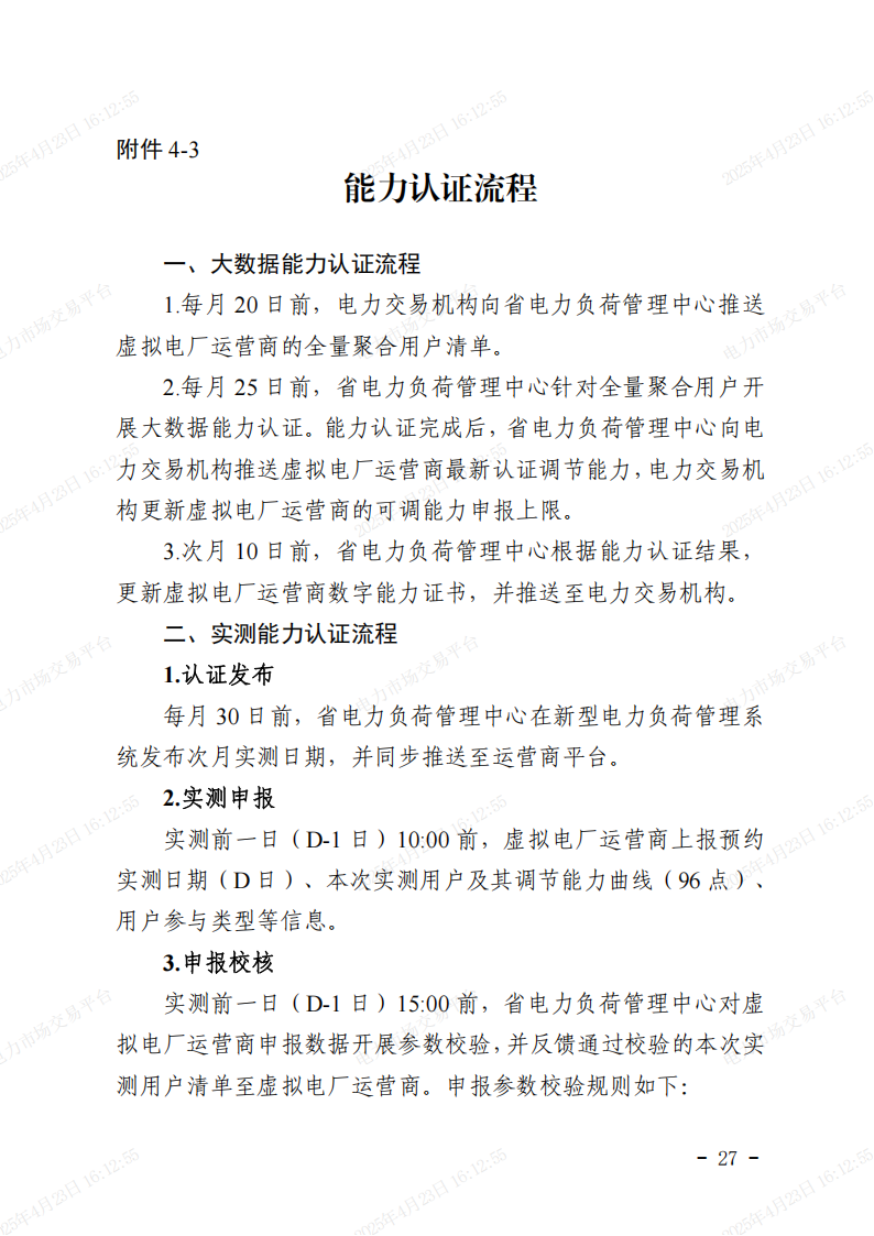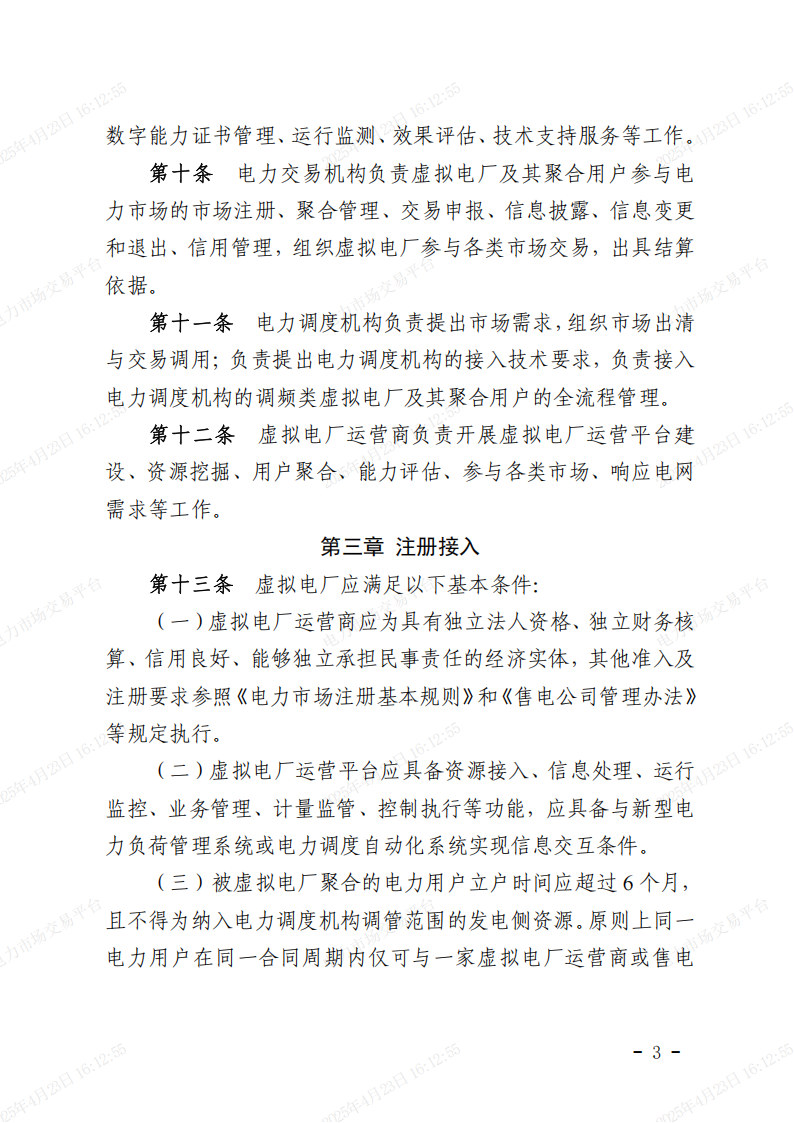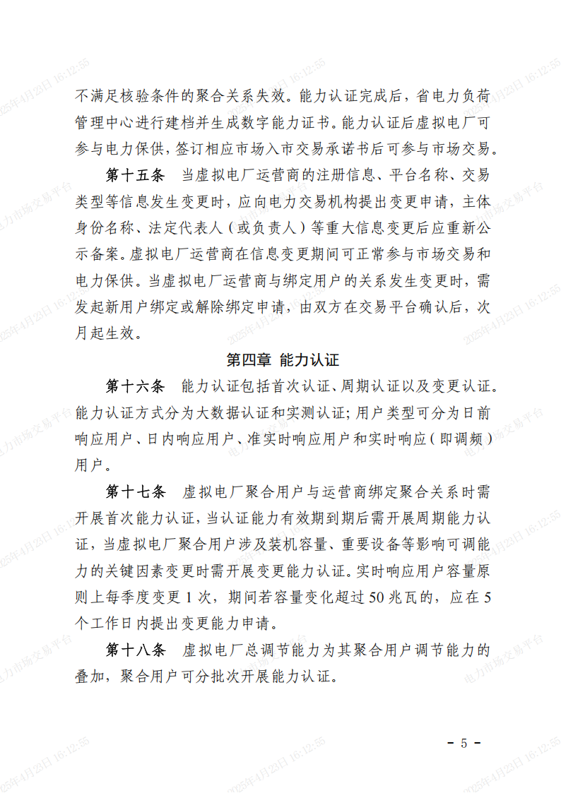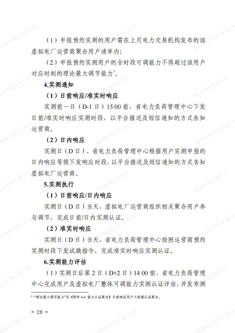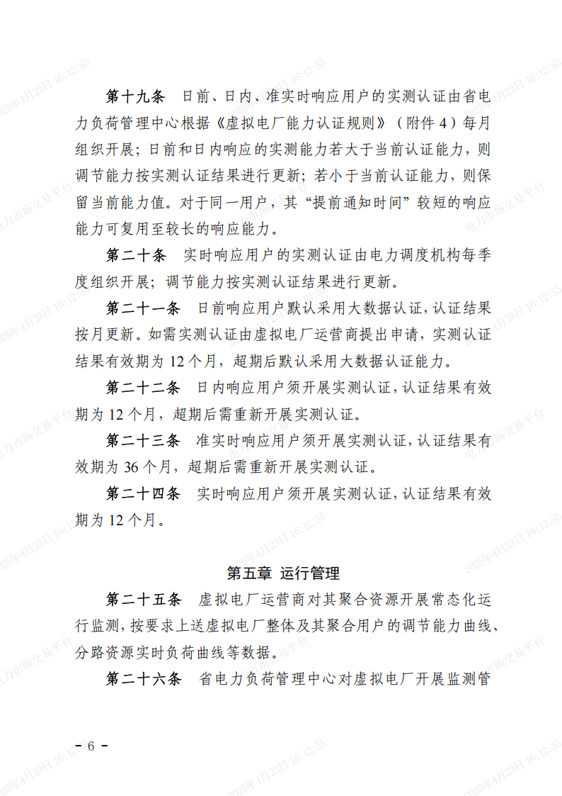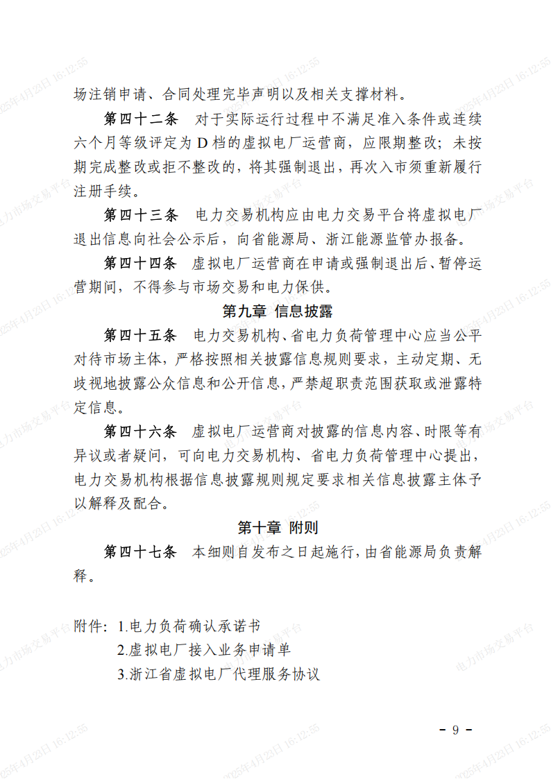 11月26日,浙江电力市场管理委员会发布《浙江电力中长期交易实施细则》等7份细则,适用于2026年电力市场交易、结算及市场管理等。《浙江电力现货电能量交易实施细则》提到,日前电能量交易组织方式采取“发电侧报量报价、用户侧报量不报价”的模式组织日前电能量市场交易。需求侧管理期间虚拟电厂不参与现货市场交易。加总后的全体申报负荷曲线,扣减虚拟电厂调节量申报曲线后,纳入日前市场出清。