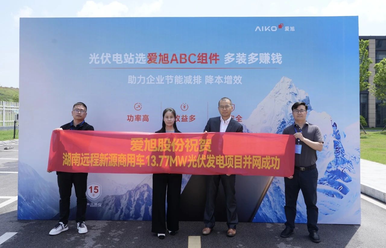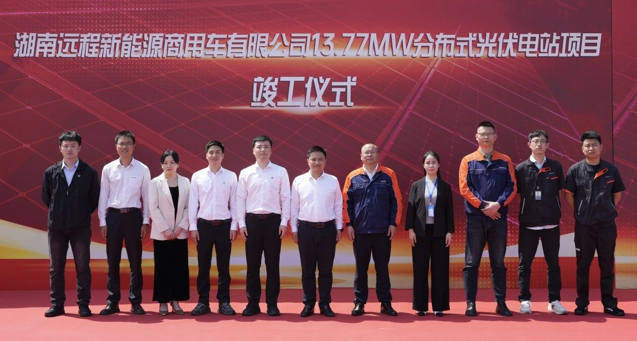 4月25日,吉利控股集团湖南远程新能源商用车有限公司13.77MW分布式光伏电站成功并网。项目投资方湘潭电化产投集团党委副书记、总经理兼湖南潭州新能源公司董事长余磊,湖南远程新能源商用车有限公司常务副总经理徐铭,爱旭股份中国区分布式业务副总裁张炜玲等出席并网仪式。