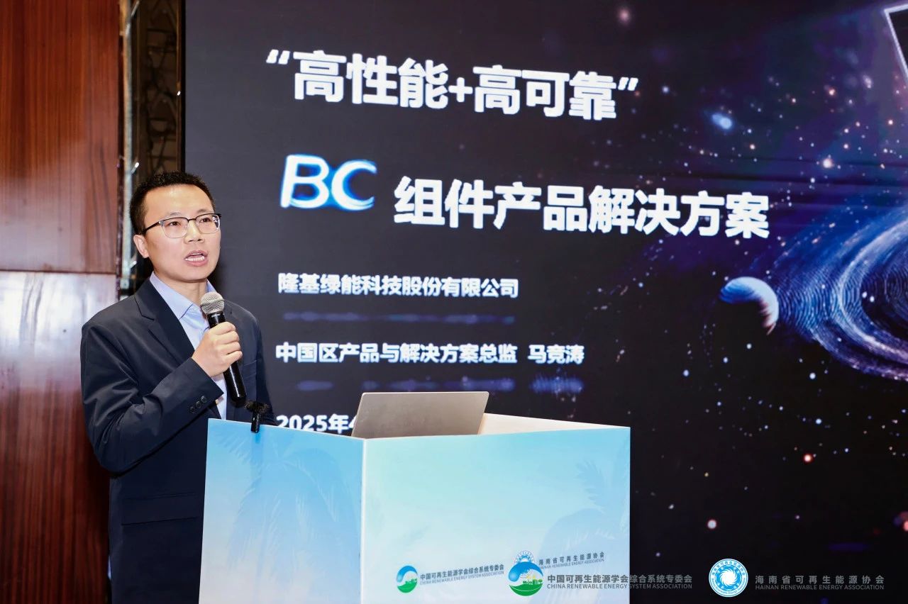 2025年4月25日,由中国可再生能源学会综合系统专业委员会、海南省可再生能源协会主办,隆基绿能承办的“海南清洁能源岛2.0版绿色低碳发展大会”在海口成功举办。会议汇聚了政府部门、能源企业、金融机构及专家学者等行业代表,共同探讨海南低碳绿色发展之路。隆基绿能中国地区部总裁高军、产品与解决方案负责人马竞涛受邀出席并发表主题演讲。