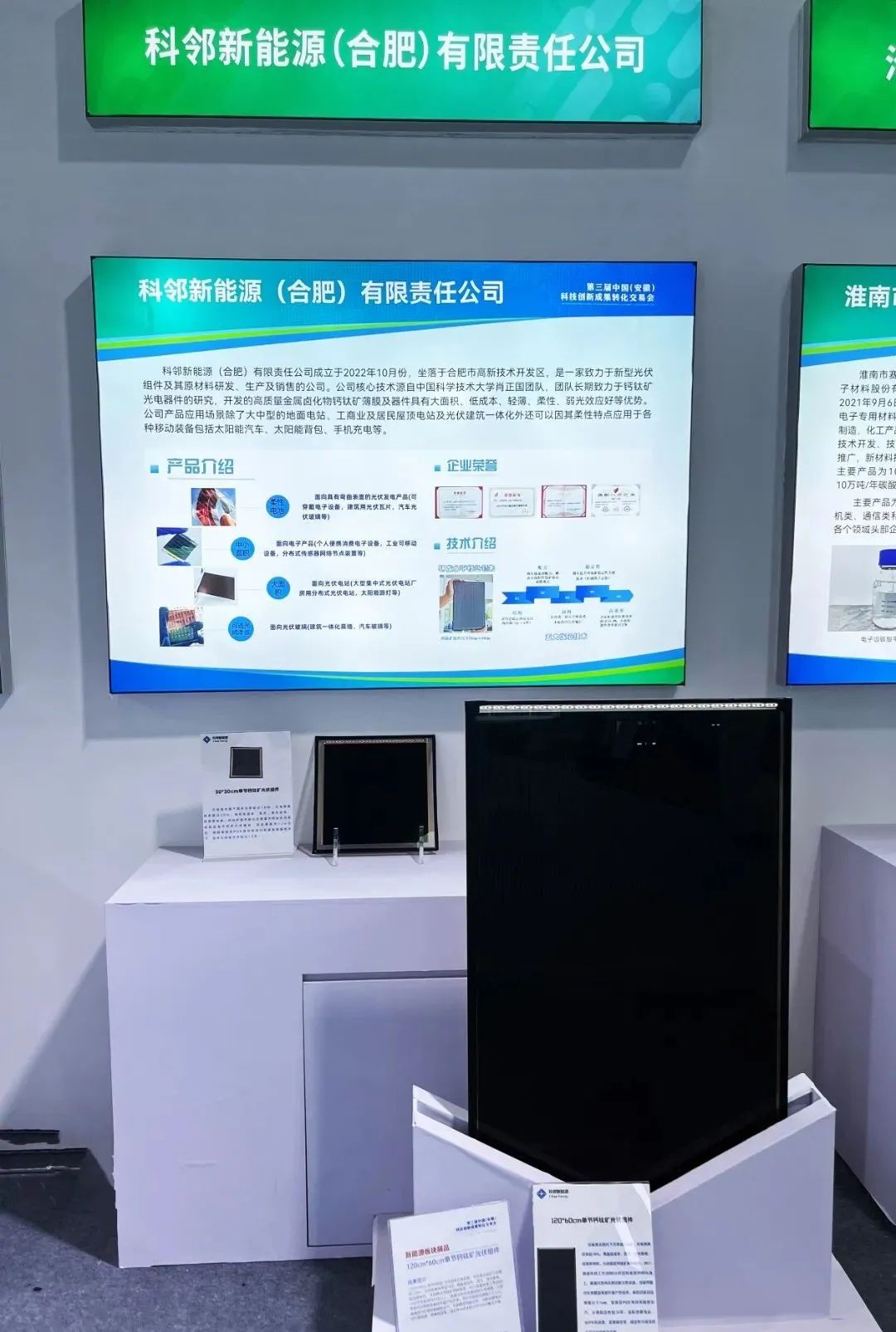 2025年4月26日,第三届中国(安徽)科技创新成果转化交易会在合肥滨湖国际会展中心正式开幕。科邻新能源作为光伏新材料领域代表企业,携单节钙钛矿电池组件亮相展会。