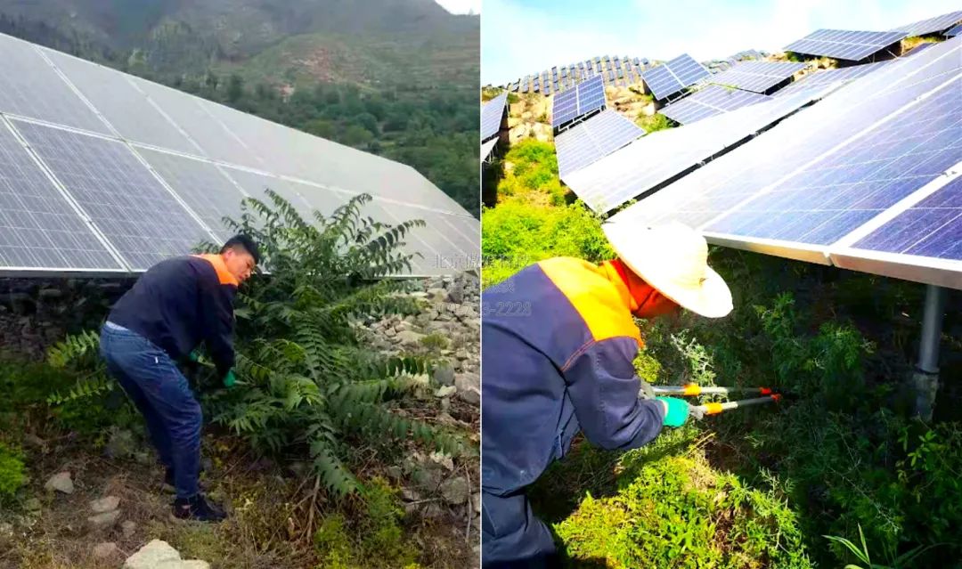 这座电站的地理位置颇为特殊,地处山区,与林区、农民生活区毗邻,不仅防火压力巨大,而且光伏板距地面仅30 - 70厘米,繁茂生长的杂草杂灌成了它发电路上的“拦路虎”。60% - 70%的光伏板被杂草遮蔽,吸光率大打折扣,“热斑效应”频发,组件损坏严重。