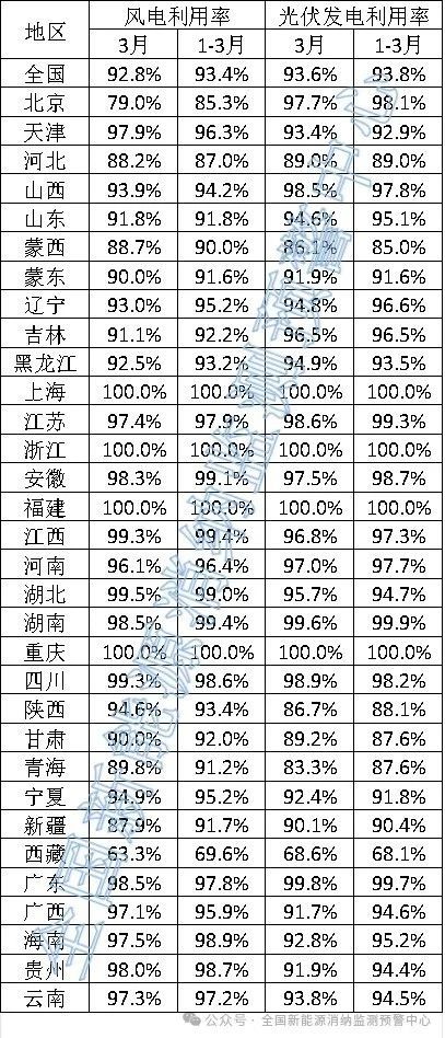 6省光伏利用率低于90%,国家能源局发布3月全国新能源并网消纳情况