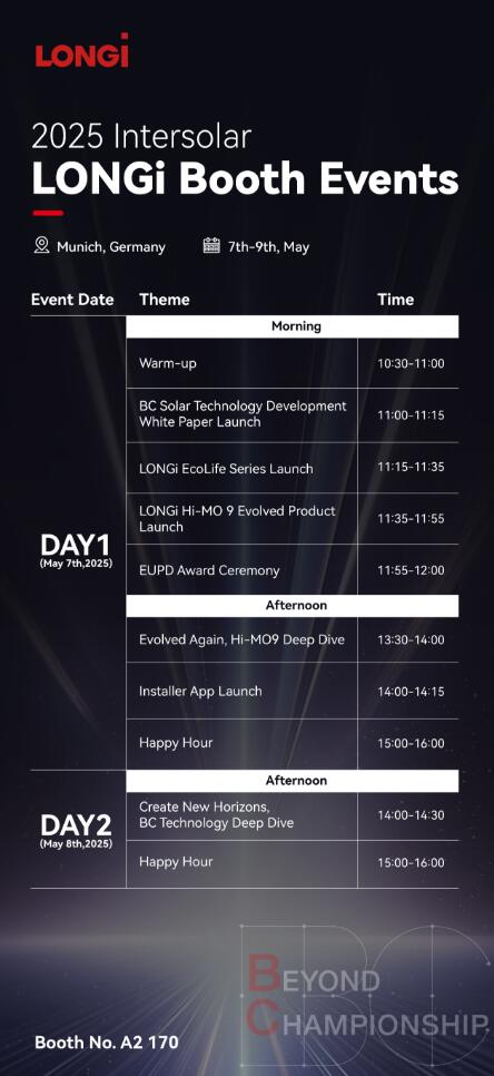 欧洲当地时间11:15分,即北京时间17:15分,EcoLife系列组件正式与欧洲用户见面。此外,隆基还将在A2丨170展位带来更多技术创新成果。