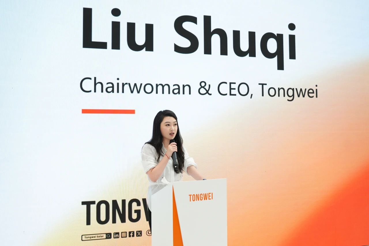 刘董在致辞中讲到,通威始终坚信清洁能源应自由而平等地服务于世界每一个人。真正的技术创新,应该有益于人类社会与自然环境的和谐共生。每一块通威组件,不仅是科技的载体,更是清洁能源系统的一部分,将阳光转化为持续不断的绿色动力,为未来数十年稳定供电。