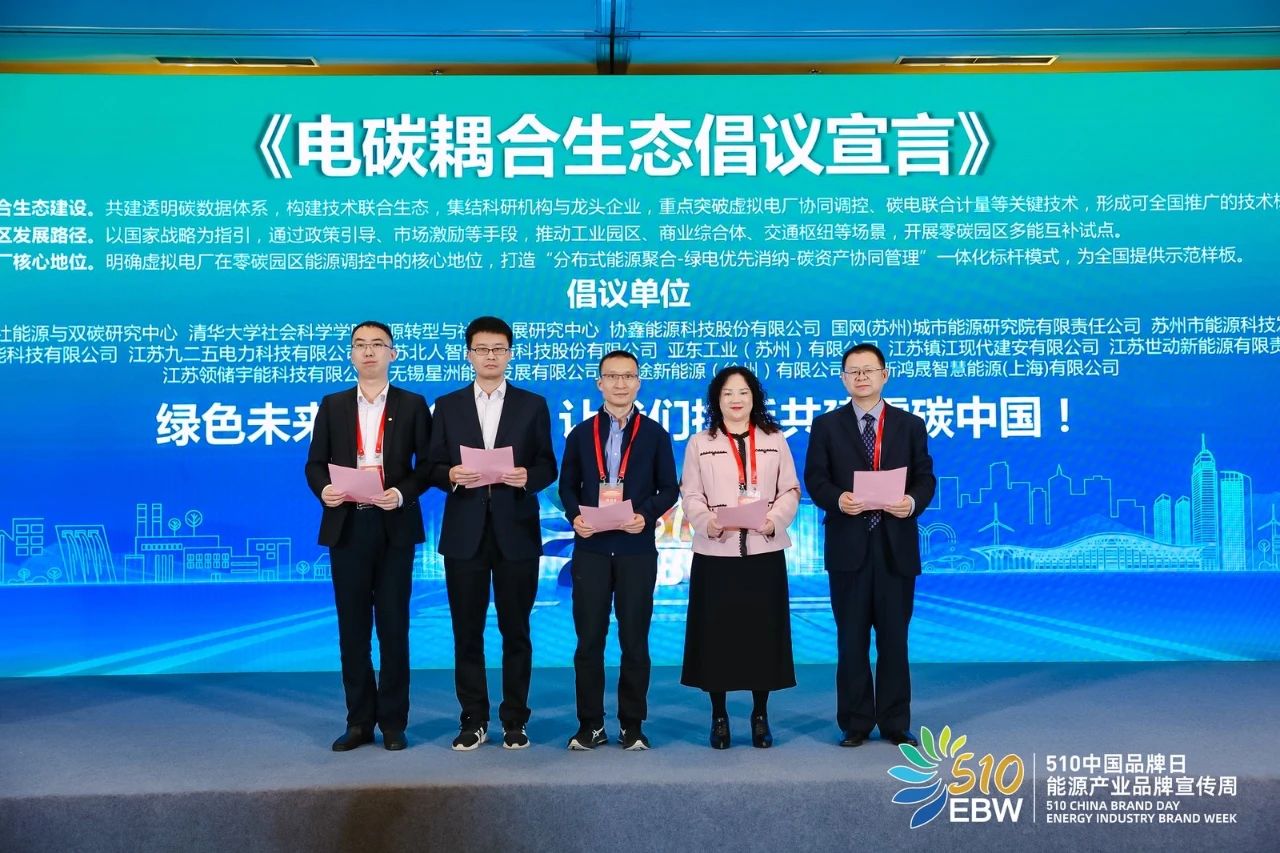 在研讨会中,协鑫能科联合中国能源研究会品牌分会、国网苏州城市能源研究院、清华大学能源转型与社会发展研究中心、蔚来能源、苏州市能源科技发展有限公司等单位,共同发起《电碳耦合与零碳园区协同发展倡议》,推动长三角虚拟电厂联盟正式成立。倡议明确将通过共建碳电数据机制、推动标准化示范输出、联合打造分布式能源与碳资产协同运营模式,为我国各地开展虚拟电厂与零碳园区融合应用提供可复制、可落地的路径参考。