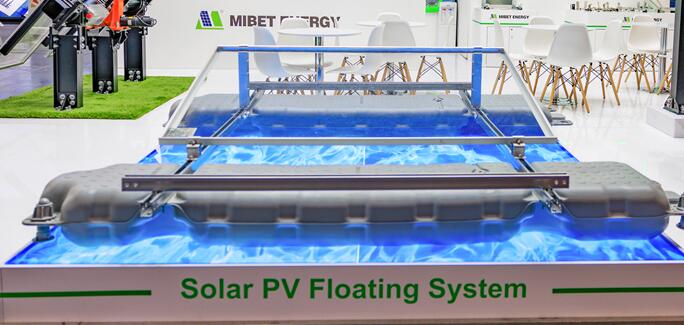 迈贝特展品系列丰富,涵盖了水上、地面、屋顶等多种应用领域,满足全球能源转型的多元化市场需求。备受关注的G5M水上漂浮系统运用了环保型浮筒(HDPE)结合镀锌铝镁钢材质设计,塑造高强度支架结构,保障系统抗风能力与耐腐蚀性性能,良好地适配于各类水域的光伏电站建设。