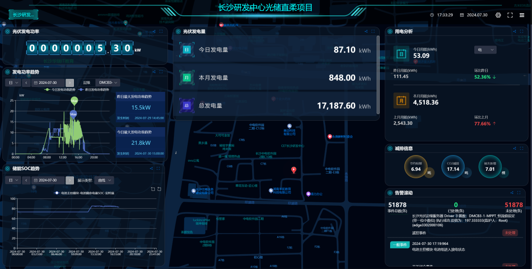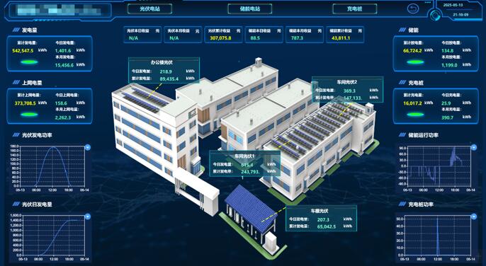 该方案依托深圳中电自主研发的源网荷储协同管理技术,提升光伏发电自用率,降低园区外购电力成本;其储能系统通过智能调度策略实现峰谷套利与电能质量优化,实现能源成本的有效控制。特别在运维管理方面,部署的智慧能源管理平台实现设备故障智能诊断,缩短故障响应时间,降低人工巡检需求。