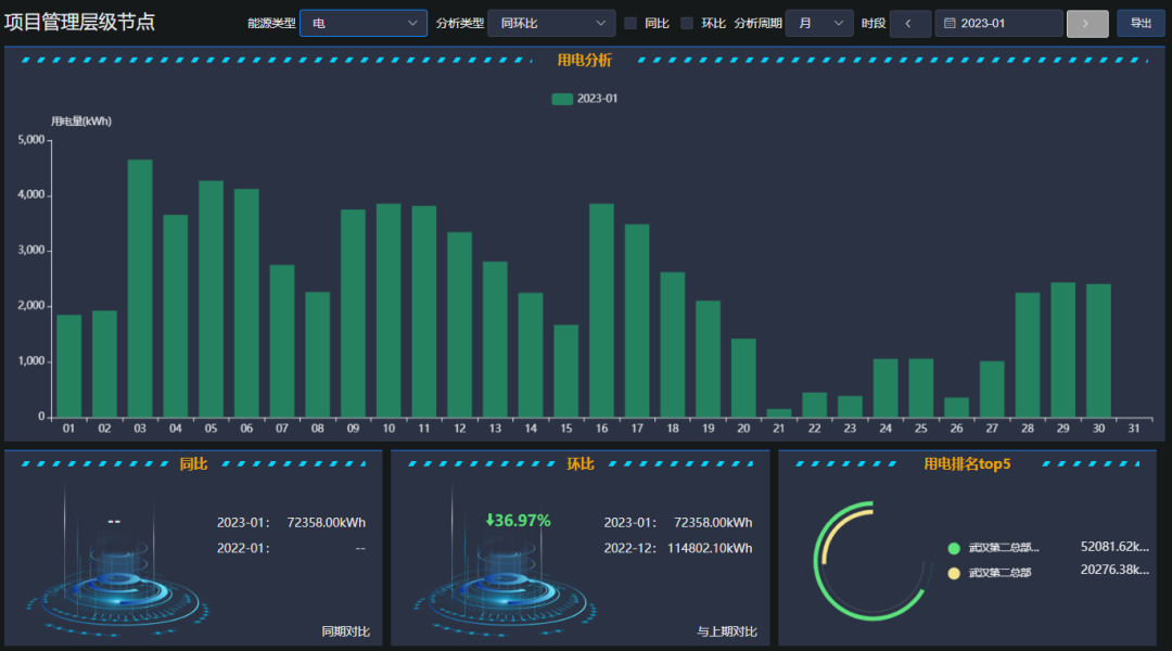 负荷运行管理:对各区域接入的负荷用电数据进行实时监视;对当前时间运行累计的负载用能情况进行监视。