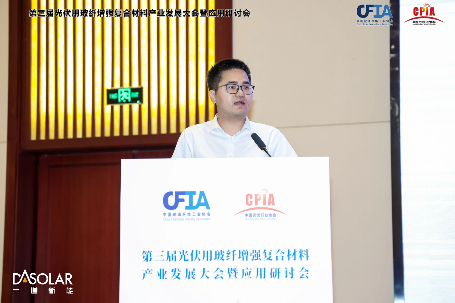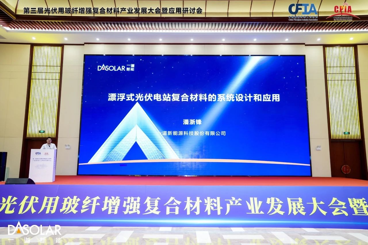 2025年5月11-13日,中国玻璃纤维工业协会联合中国光伏行业协会主办的第三届光伏用玻纤增强复合材料产业发展大会暨应用研讨会在江苏涟水召开,会议聚焦技术升级、标准建设与场景创新,共探差异化竞争之道。一道新能应用技术部产品总监潘浙锋先生受邀参会,并作《漂浮式光伏电站复合材料的系统设计和应用》主题报告。