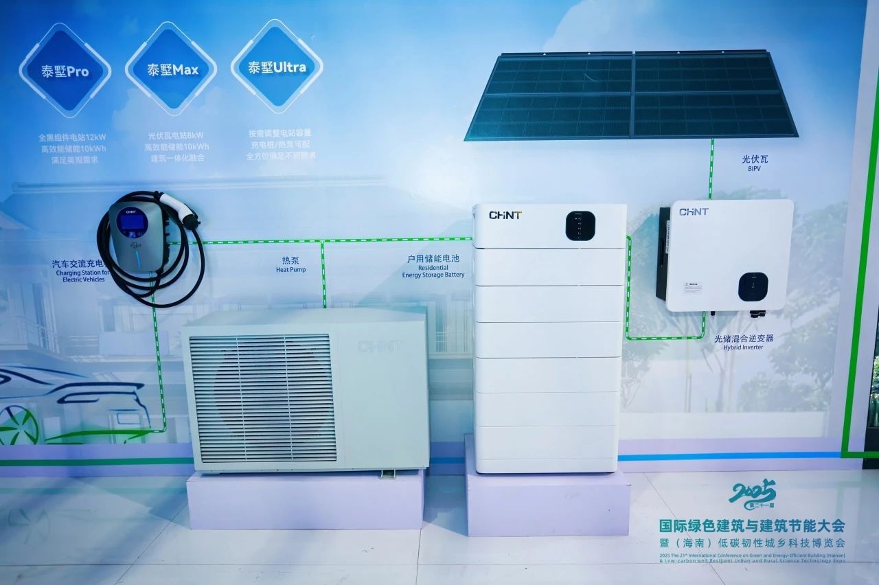 正泰新能源产业生态群携适用于各类应用场景的“源网荷储充一体化”、虚拟电厂、零碳园区、阳台光伏、绿电别墅等解决方案亮相椰城。