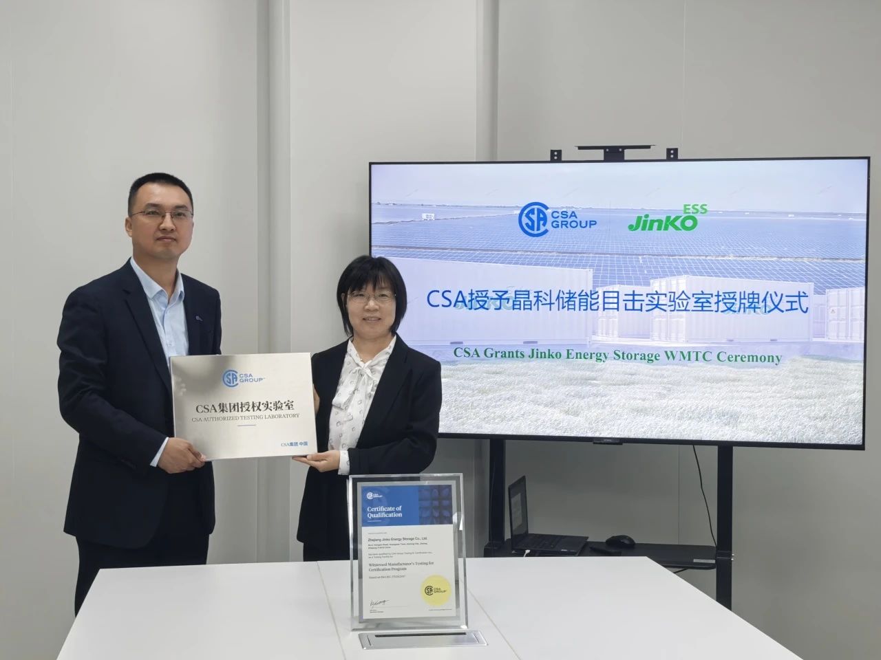 近日,晶科储能检测中心正式通过CSA集团(加拿大标准协会)严格审核,成为全球储能行业获得"WMTC(Witnessed Manufacturer's Testing for Certification Program)目击实验室资质"的企业之一。该资质的取得标志着晶科储能实验室测试能力达到国际权威标准,检测数据可直接用于CSA认证体系,为加速北美及全球市场产品认证提供了重要支撑。