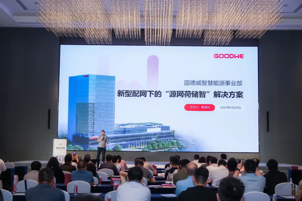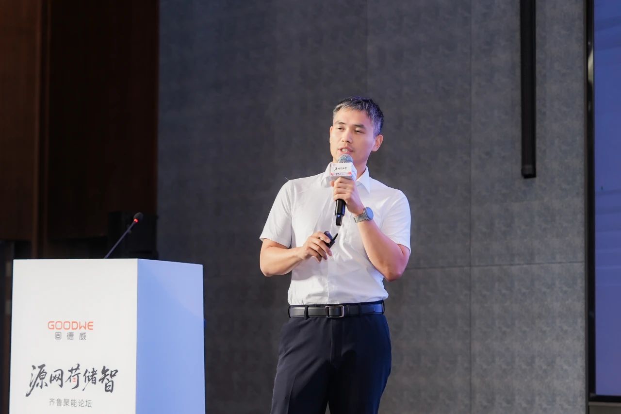 固德威智慧能源事业部副总经理戴晨松博士深入剖析了新型配电网作为新型电力系统重要组成部分的战略意义,并详细阐述了固德威“源网荷储智”一体化的概念及其互动融合生态。戴博强调,通过数智化技术,如光储充系统和虚拟电厂,可以实现能源的高效配置与利用,推动绿色、智能化的新型配电网发展。此外,他还介绍了山东省在源网荷储一体化试点项目中的积极探索,以及分布式自发自用、虚拟电厂、绿电交易和就地就近消纳等典型场景与解决方案,为构建能源互联网“最后一公里”提供了实践路径和示范案例。