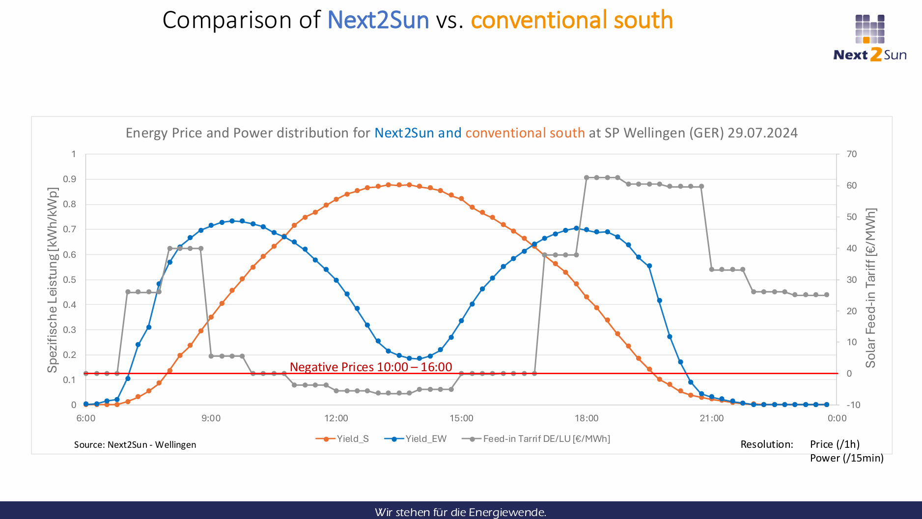Next2Sun业务开发负责人Peter Bendix深入解码德国电价走势,阐述了垂直光伏系统在重塑农业、建筑、交通等传统行业能源格局及提升光伏投资收益中的关键作用。他着重指出,垂直安装模式依托早晨与傍晚的“双峰发电”优势,在德国政府取消负电价时段补贴的政策调整后,已然成为更具吸引力的价值回报方案。华晟将携手德国垂直光伏市场的领军企业Next2Sun——同时也是华晟欧洲独家战略合作方,全力推广更易维护、对电网更友好的垂直光伏解决方案,助力其在全球可再生能源市场中占据重要席位。