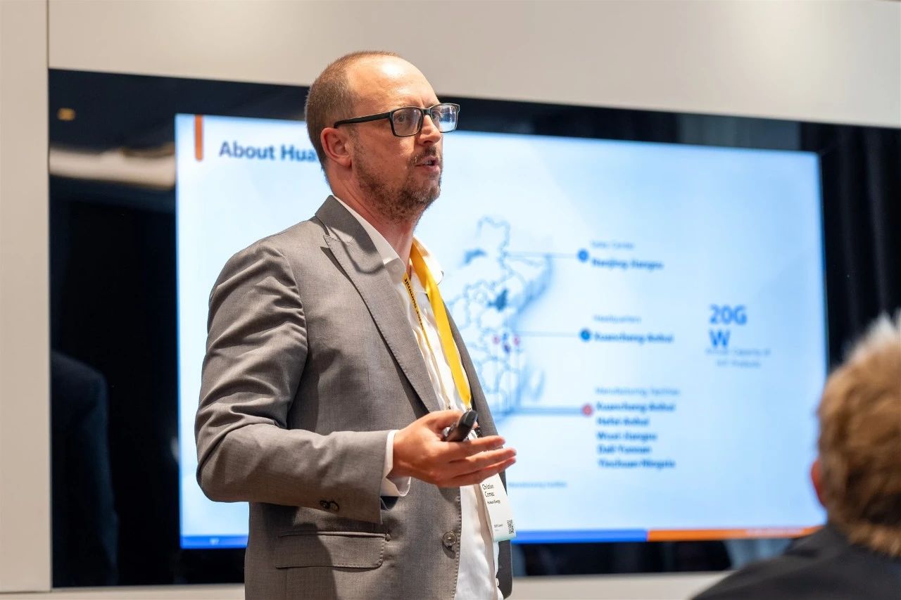 华晟欧洲业务发展总监Christian Comes为现场嘉宾深度解析异质结技术在垂直光伏领域的多重优势。他指出,华晟在组件设计上创新结合减反射镀膜玻璃、双面光转膜和丁基胶封边等前沿技术,并优化边框与接线盒设计,使组件能够灵活适配横装或竖装需求,极大提升了安装的便利性和土地利用率。
