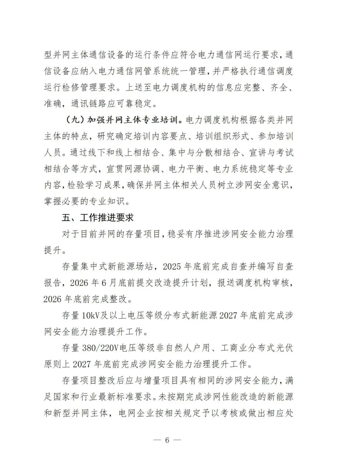 2、存量10kV及以上电压等级分布式新能源2027年底前完成涉网安全能力治理提升工作。