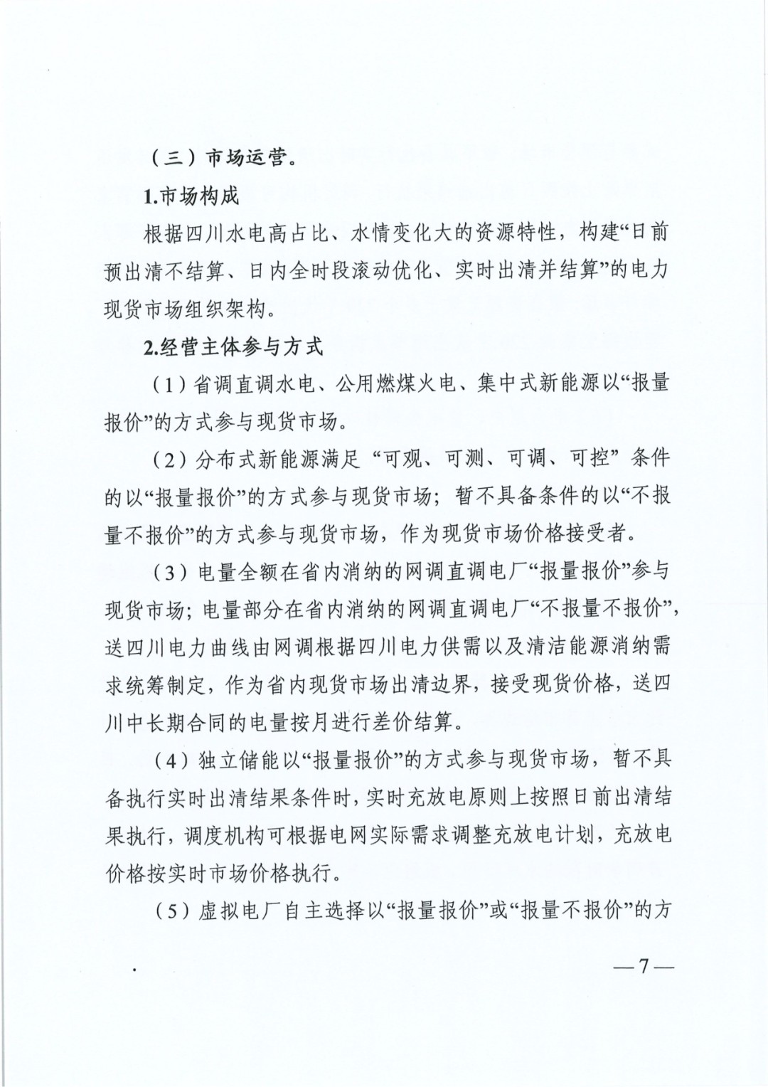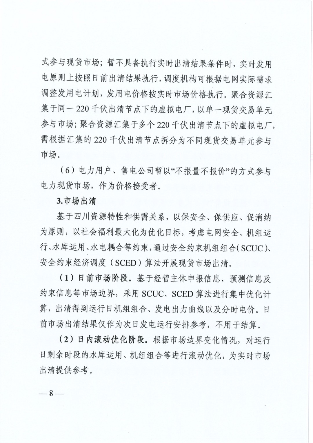 1.建立“多电源参与、全电量优化、全水期运行”新模式下的电力现货市场体系,建立适应四川保供应、促消纳、水电耦合、水库优化利用等需求的市场机制和运行机制。
