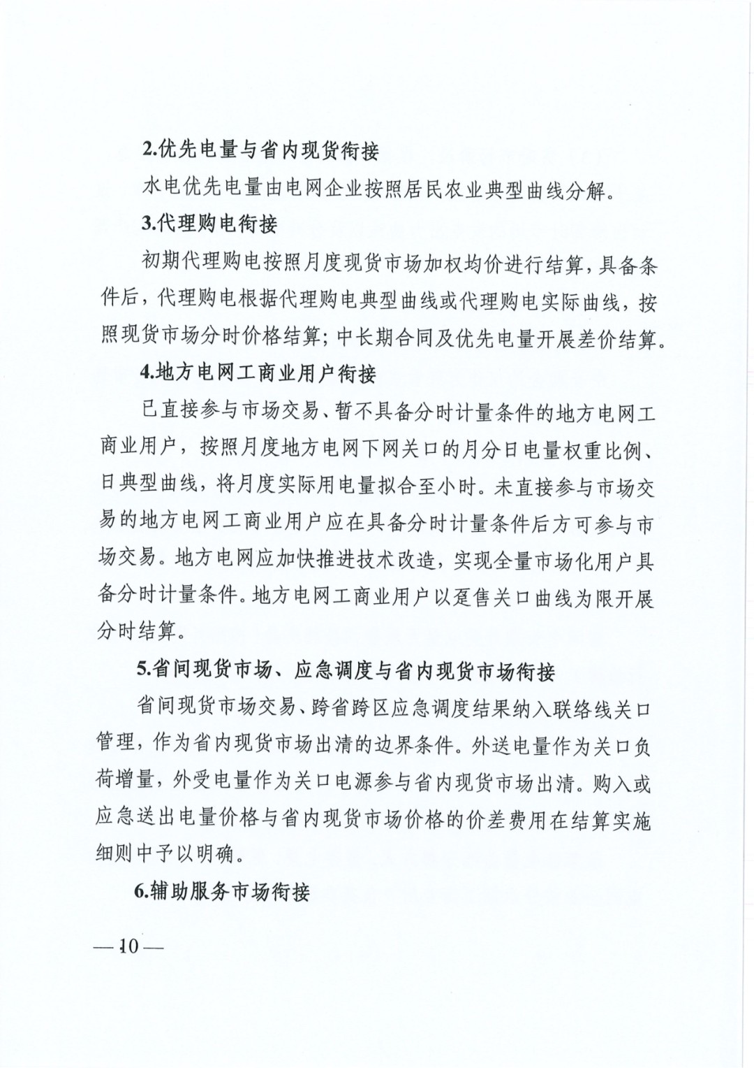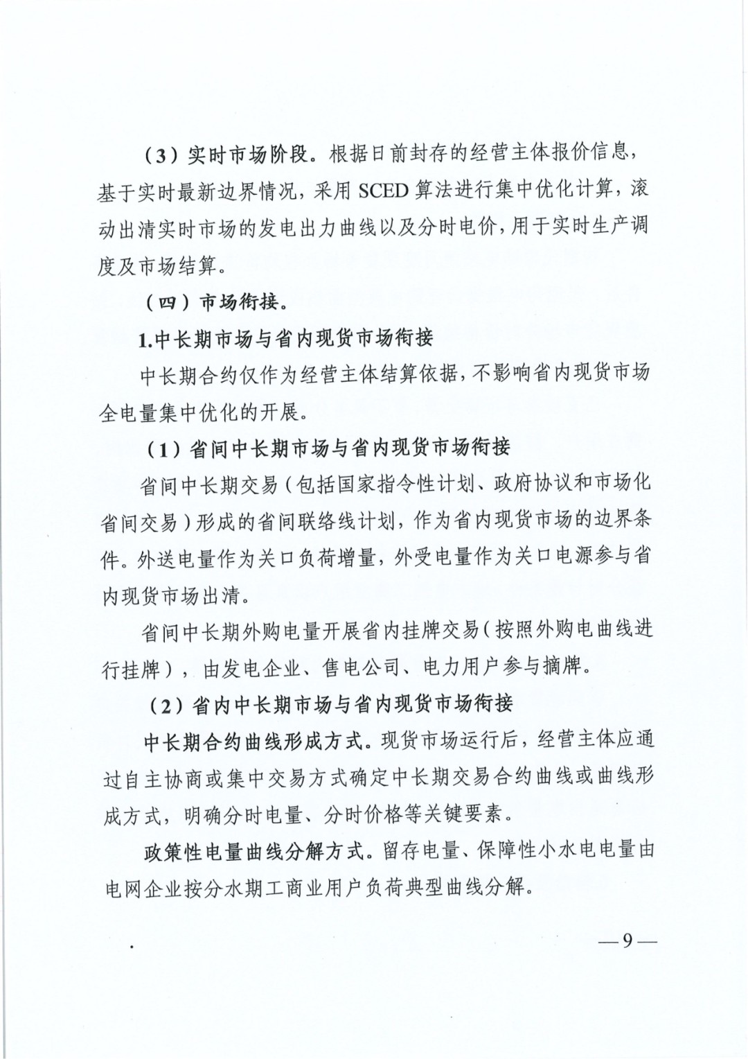 2.加强中长期市场与现货市场的衔接,明确中长期分时交易曲线和交易价格;做好调频、备用等辅助服务市场与现货市场的衔接,现货市场连续结算试运行后,省内调峰辅助服务市场不再运行;推动电力零售市场建设,完善批发、零售市场价格传导。