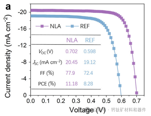 所得的NLA钙钛矿膜显示出更高效的载流子传输能力、更低的激子结合能、减弱的电子-声子耦合,以及氧气暴露时氧扩散速率显着降低。