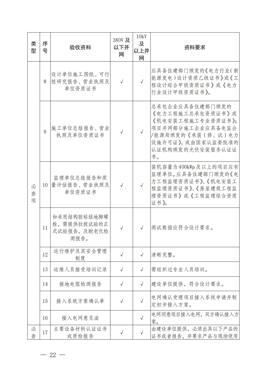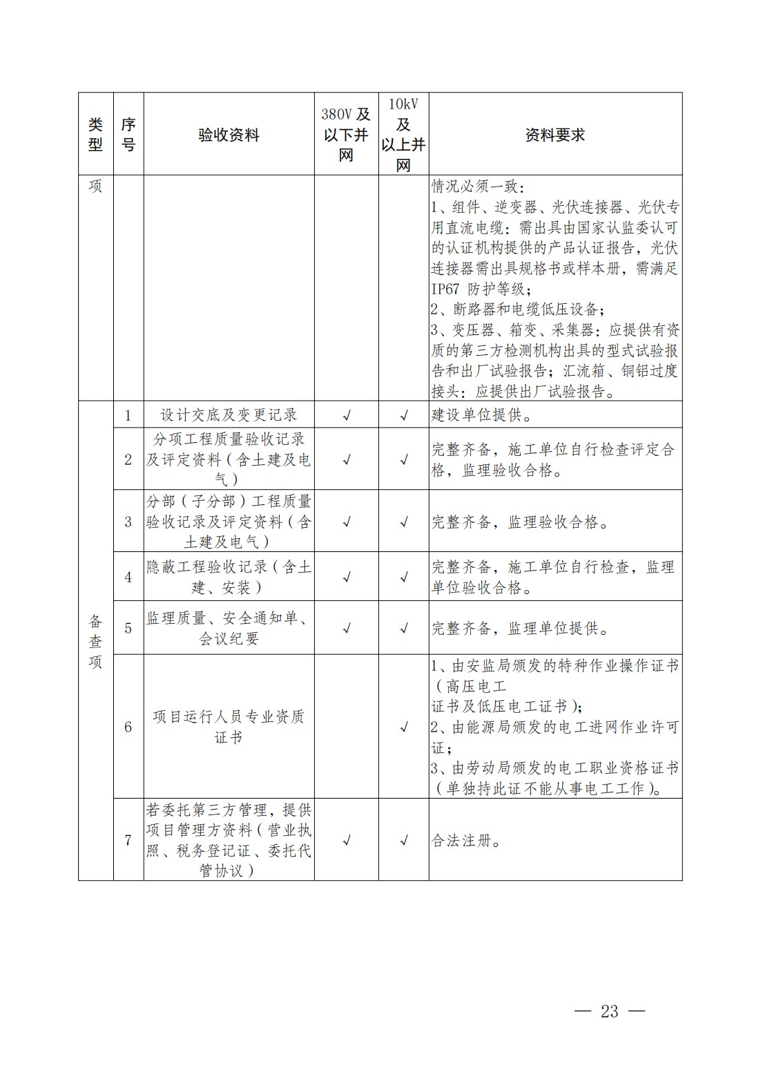 要求准备的必备材料包括但不限于:项目备案文件、接入系统方案、建设单位及设计单位营业执照、相关资质证明、房屋安全鉴定报告及承载分析计算报告、光伏产品认证文件、竣工验收报告等。