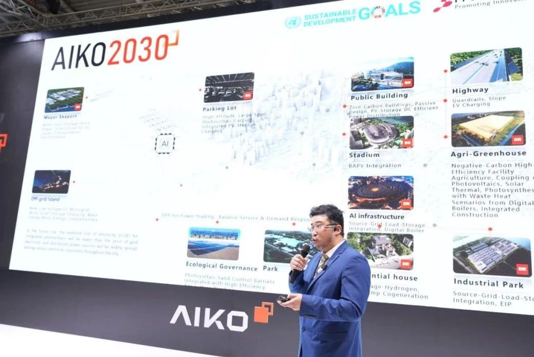 在演讲中,韩蓄也陆续分享了爱旭在建筑、生态治理、交通、AI领域的新场景应用,为听众详细解读了爱旭在全球范围新能源领域内打造的的12个零碳示范工程,包括港口场景、离网场景、生态治理场景、停车场场景、公园场景、建筑场景、体育场景、算力场景、住宅场景、交通场景、农业场景、工业园区场景的技术成果。