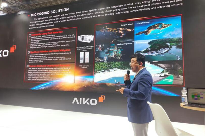 通过公建、住宅、交通、农业等各个领域的案例解析,从光储在为岛屿提供廉价于柴油的绿色电力,到在人类适宜居住区域外封锁土壤沙漠化扩散等方面也扮演着重要角色,韩蓄生动分享了爱旭如何将技术转化为可触达的零碳生活体验。