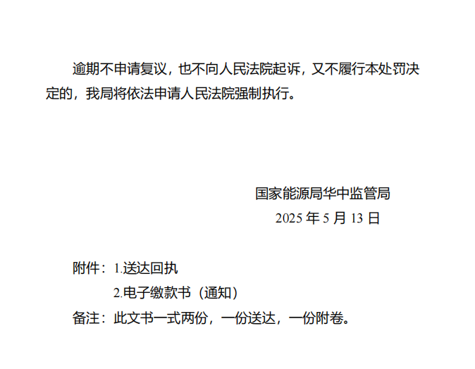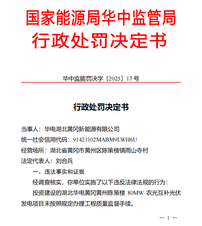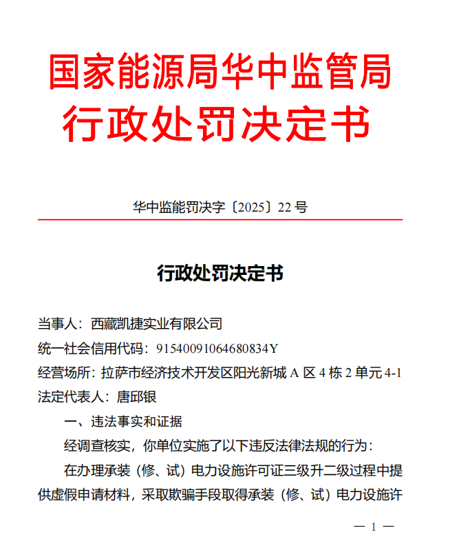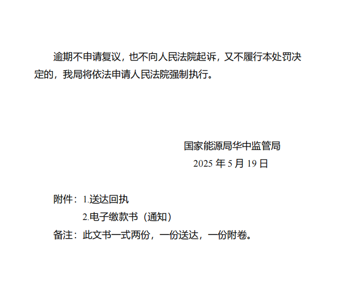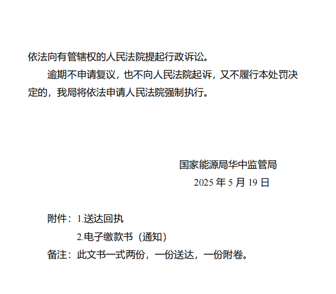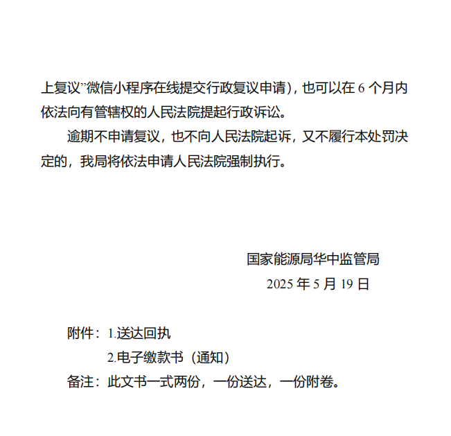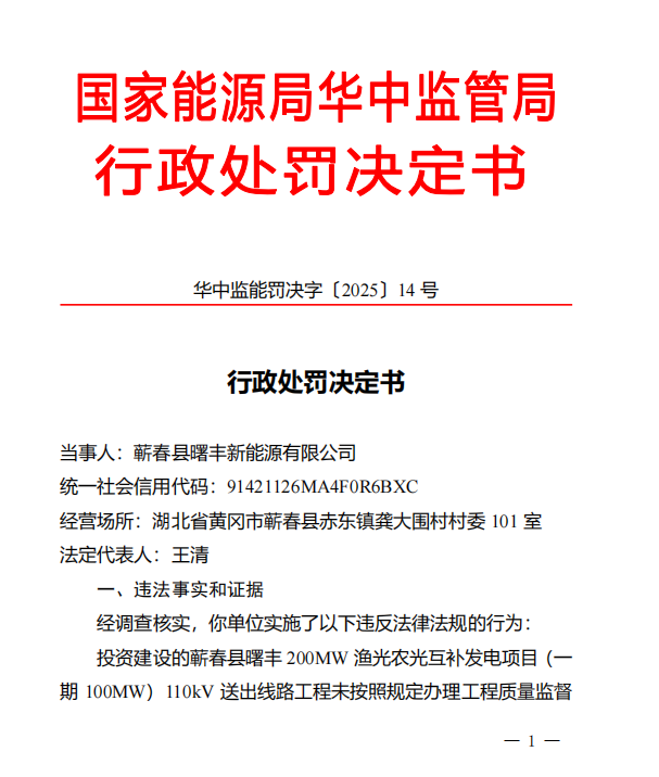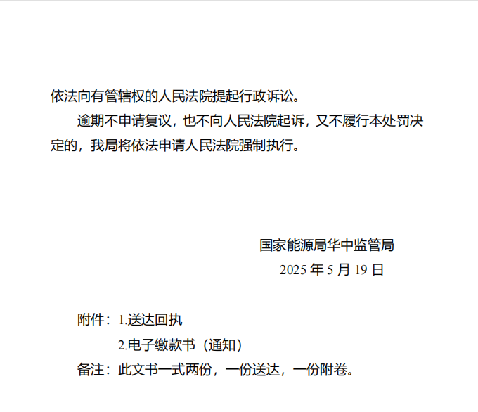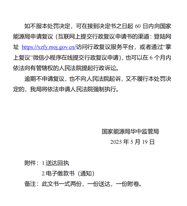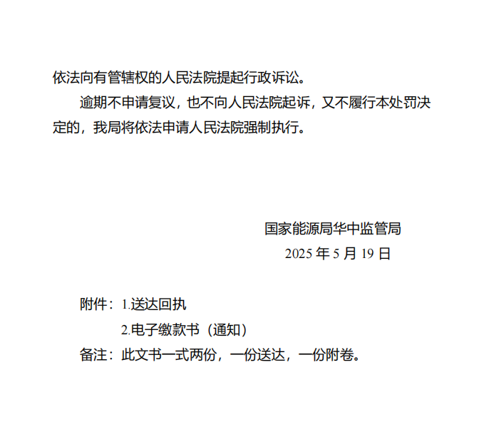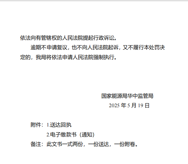 5月21日,国家能源局华中监管局发布行政处罚决定书,涉及三峡旗下企业2家、华电旗下企业2家以及华润、国家能源集团、湖北能源集团、中国电建旗下等共计10家企业,累计处罚金额达262万元。