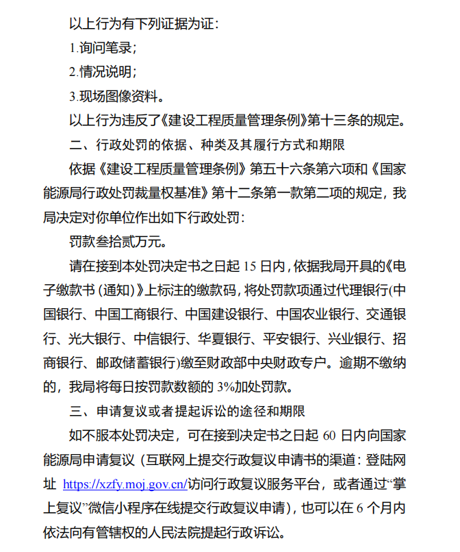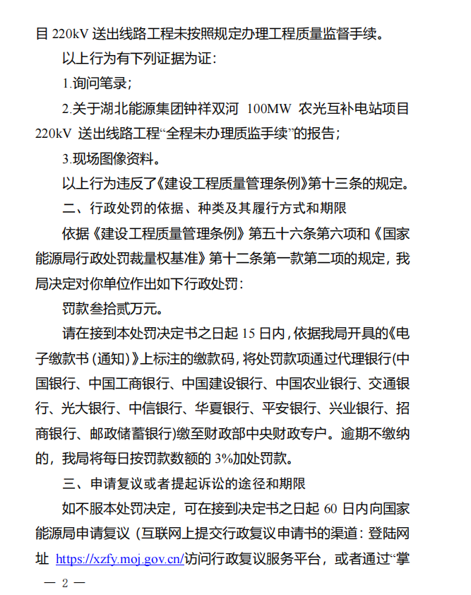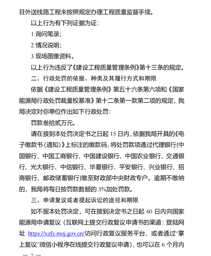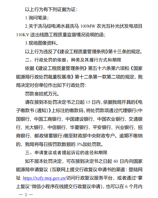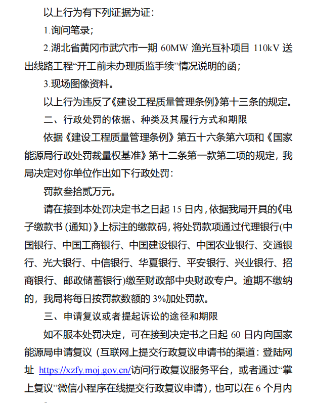 其中,7个光伏项目因未办理工程质量监督手续被下定行政处罚决定书。