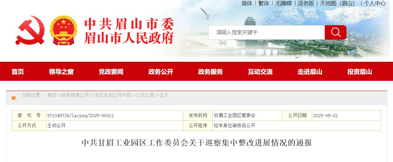 根据市委统一部署,2024年3月27日至5月12日,市委第三巡察组对甘眉工业园区党工委开展了常规巡察。7月23日,向园区党工委反馈了巡察意见。按照党务公开原则和巡察工作有关要求,现将巡察整改进展情况予以公布。