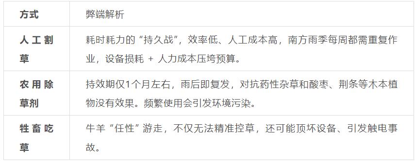 在过去,光伏电站尝试过多种除草方式,但都难以摆脱 “高投入、低回报” 的困境。