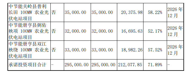 中节能关岭县普利长田 100MW农业光伏电站项目、中节能册亨县弼佑秧项100MW农业光伏电站项目、中节能册亨县双江秧绕 100MW农业光伏电站项目目前已分别转固 75 兆瓦、75 兆瓦、70 兆瓦,剩余部分因土地交付延迟,建设进度有所推迟;