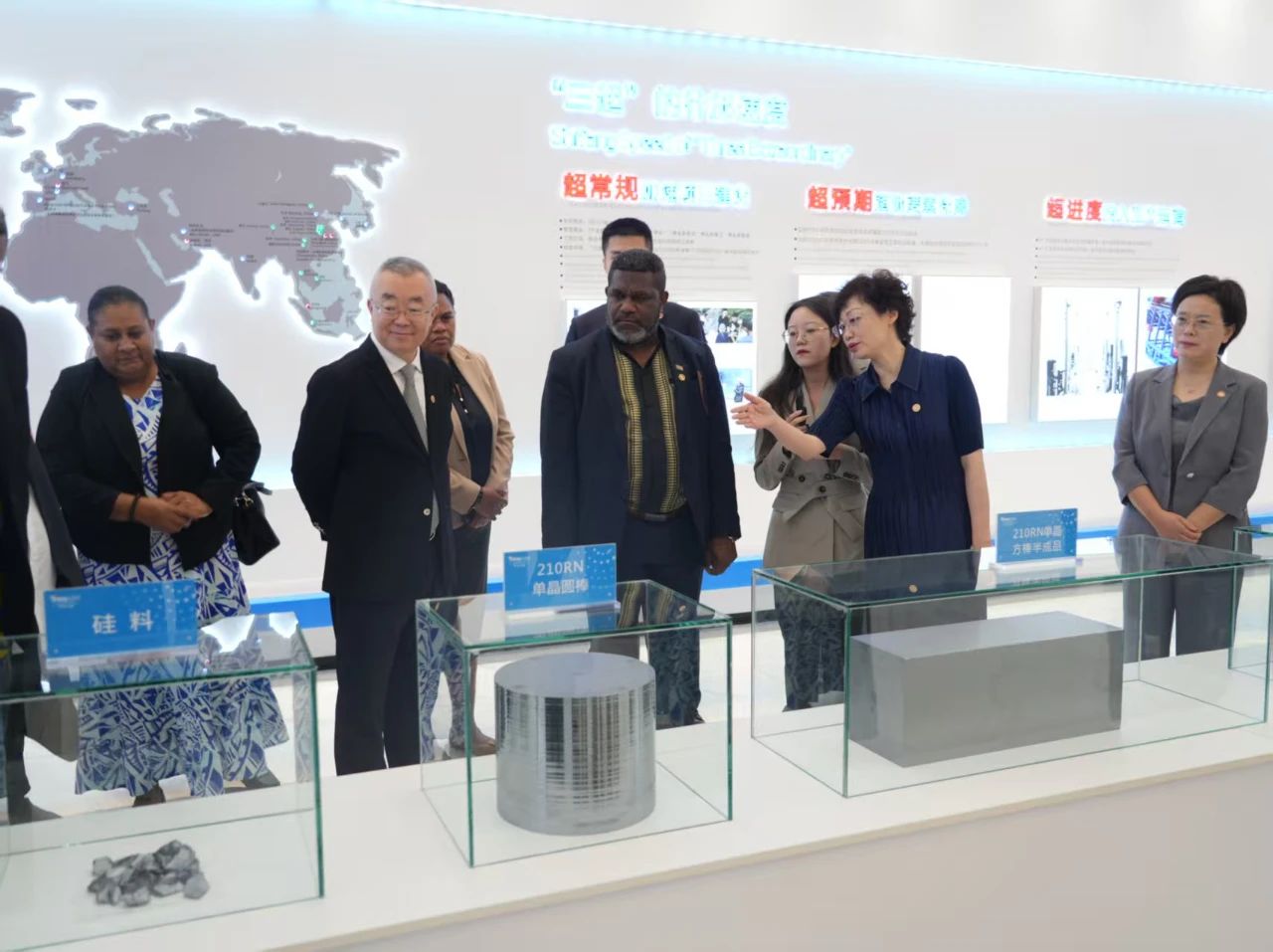5月27日上午,瓦努阿图副总理科纳坡一行莅临天合光能德阳基地参观交流,落实去年中瓦两国发布的联合声明,在应对气候变化、绿色低碳等领域务实合作,推动《联合国气候变化框架公约》及其《巴黎协定》全面有效实施。四川省外办副主任李怀强、德阳市委副书记朱莉、德阳市委外办主任顾申伟、什邡市委书记晏世莹等陪同参观。天合光能董事长特别助理杨晓忠、天合光能主材料产品线总监白涛陪同接待,全面介绍了天合全球领先发展情况,特别是在岛屿国家和地区的成功案例。