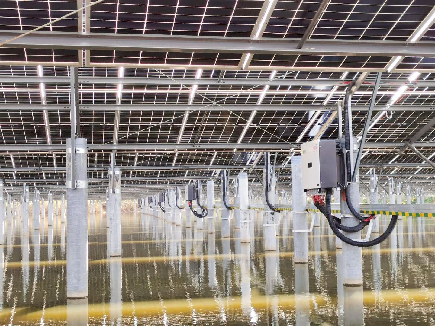 睢宁县沙集镇50MW渔光互补光伏发电项目顺利并网发电。正泰电源为其提供了320kW组串式逆变器,板上发电,板下养鱼,不仅展示了最前沿的光伏技术,还描绘了一幅生动的科技与渔业水乳交融的完美画卷。