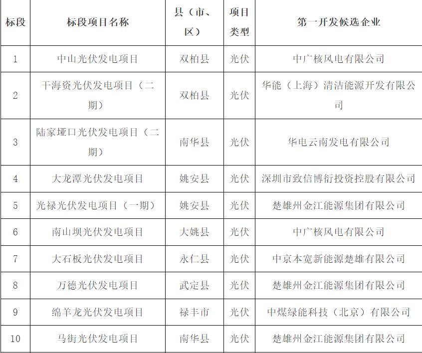 按照《楚雄州发展和改革委员会关于楚雄州2025年第一批新能源项目竞争性配置公告》,现已完成各项评审工作,根据评审委员会提交的《评审报告》,现将评审结果公示如下(按照竞争性配置文件规定,每个标段评选1家企业):