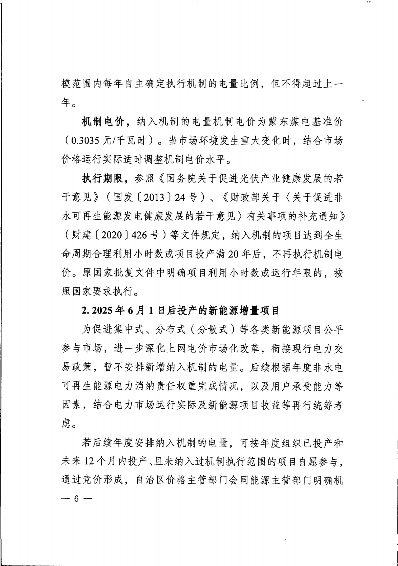 增量项目:衔接现行电力交易政策,暂不安排新增纳入机制的电量。后续根据年度非水电可再生能源电力消纳责任权重完成情况,以及用户承受能力等因素,结合电力市场运行实际及新能源项目收益等再行统筹考虑。