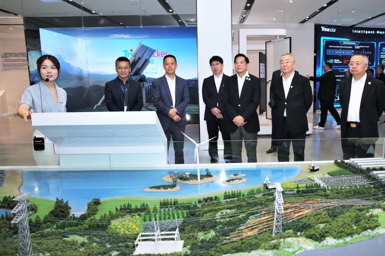 皮拉潘一行先后参观了天合光能梦想与创新展示中心、光储充放一体化微电网示范站及光伏科学与技术全国重点实验室。当了解到天合光能210组件累计出货量稳居全球第一和钙钛矿叠层技术发明专利量全球第一时,皮拉潘给予高度赞赏。