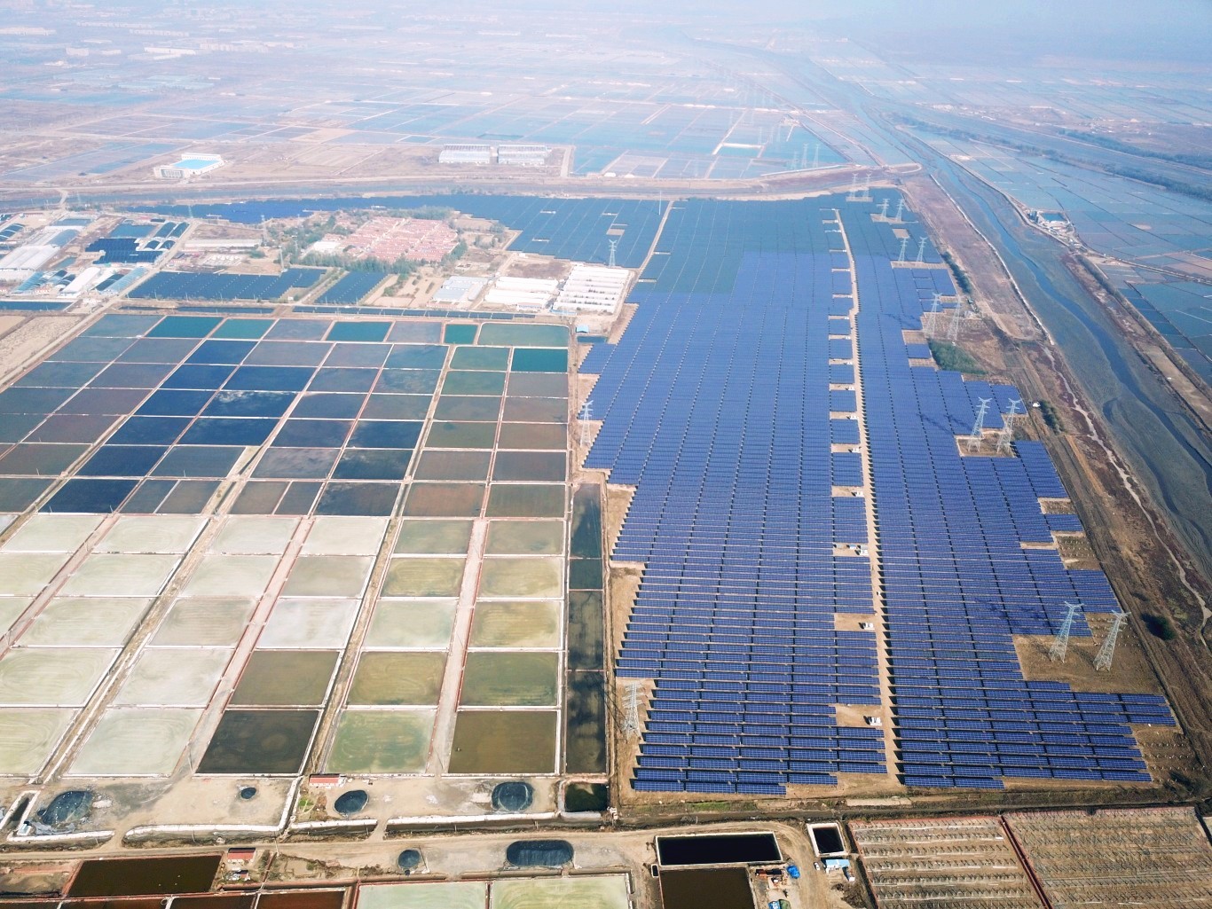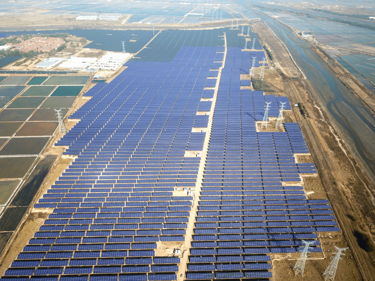 高密市100MW农光互补项目航拍图